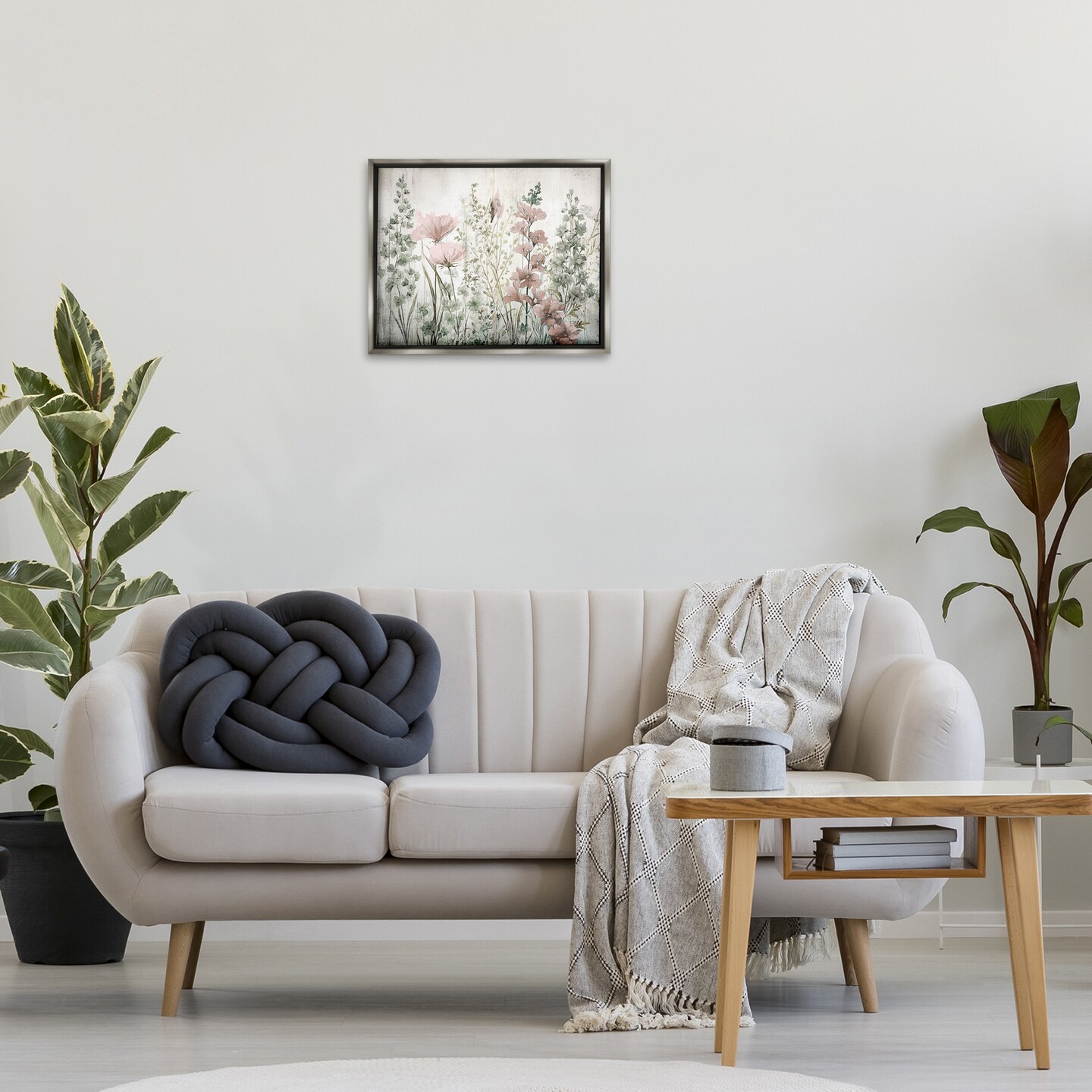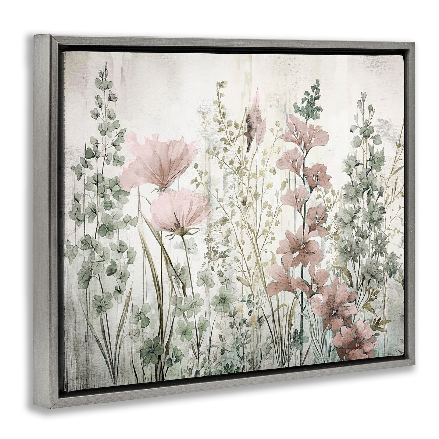 Stupell Industries Blush Wildflower Sprigs Framed Floater Canvas Wall Art Design by Sasha
