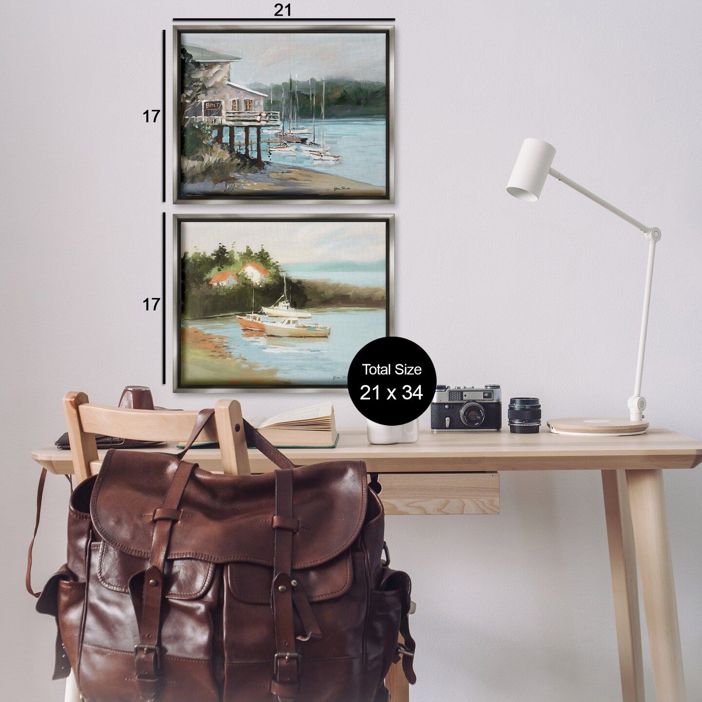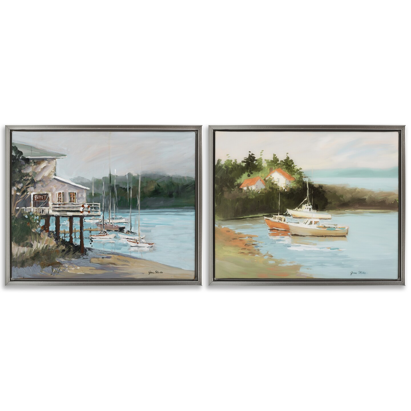 Stupell Industries Boat Lakeshore Landscape 2 pc Framed Floater Canvas Wall Art Set Design by Jane Slivka