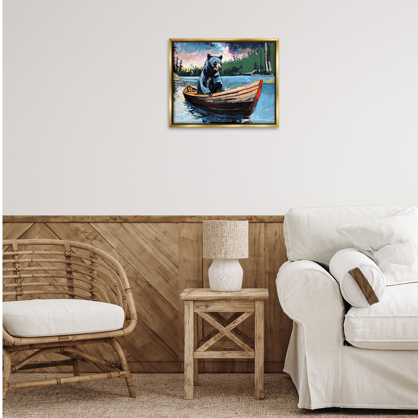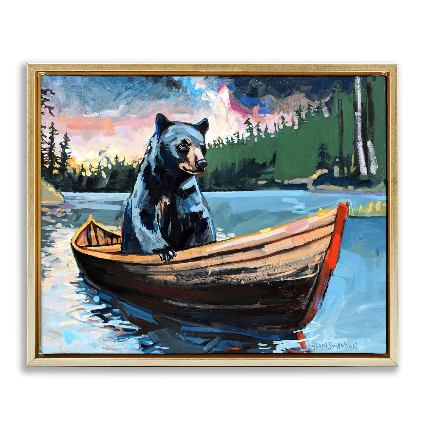 Stupell Industries Boating Black Bear Floater Framed Canvas Wall Art Design by Adam Swanson