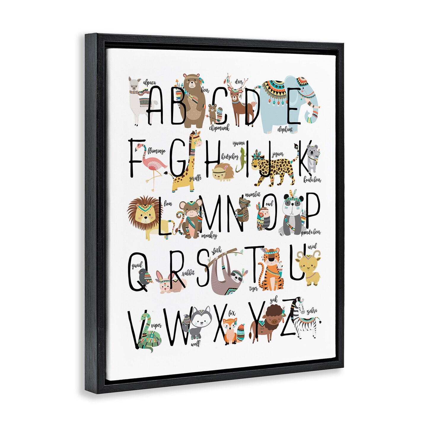 Stupell Industries Boho Animals Alphabet Framed Floater Canvas Wall Art