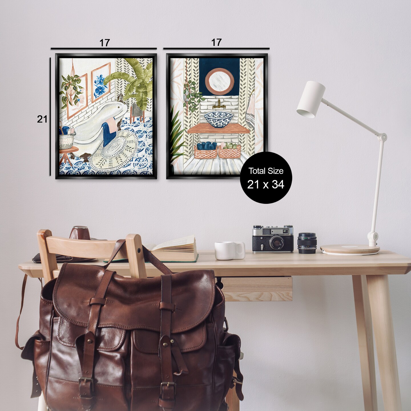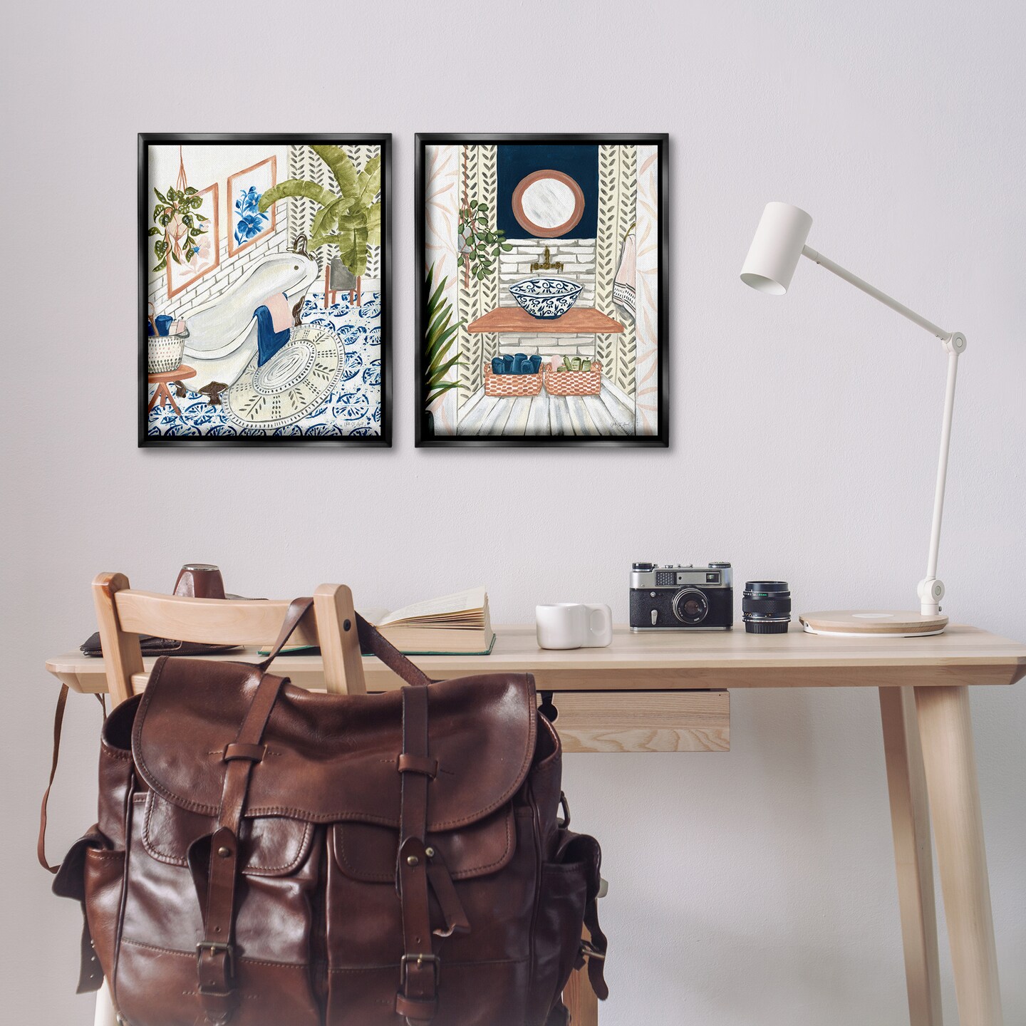 Stupell Industries Boho Chic Bathroom 2 pc Framed Floater Canvas Wall Art Set Design by Yvette St. Amant