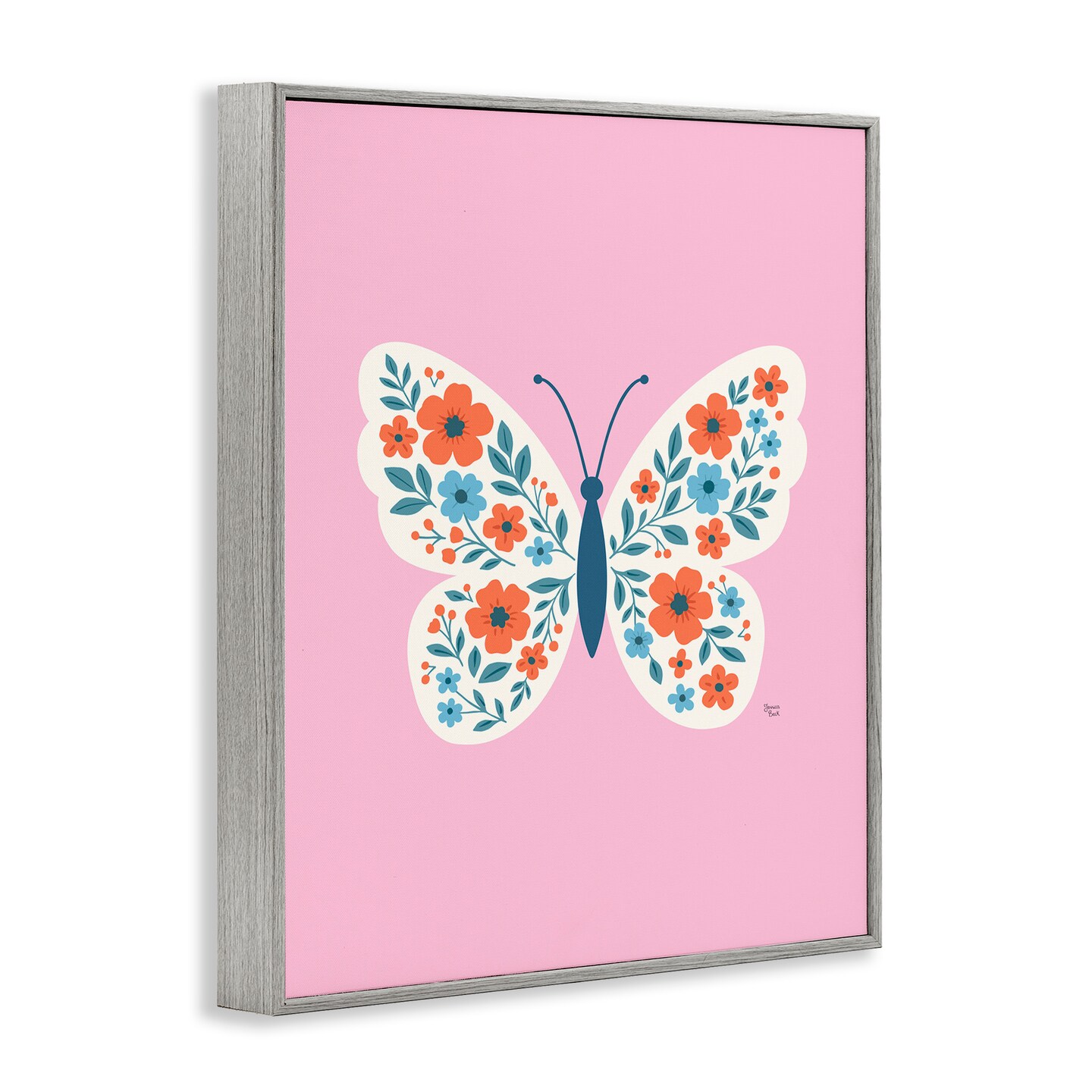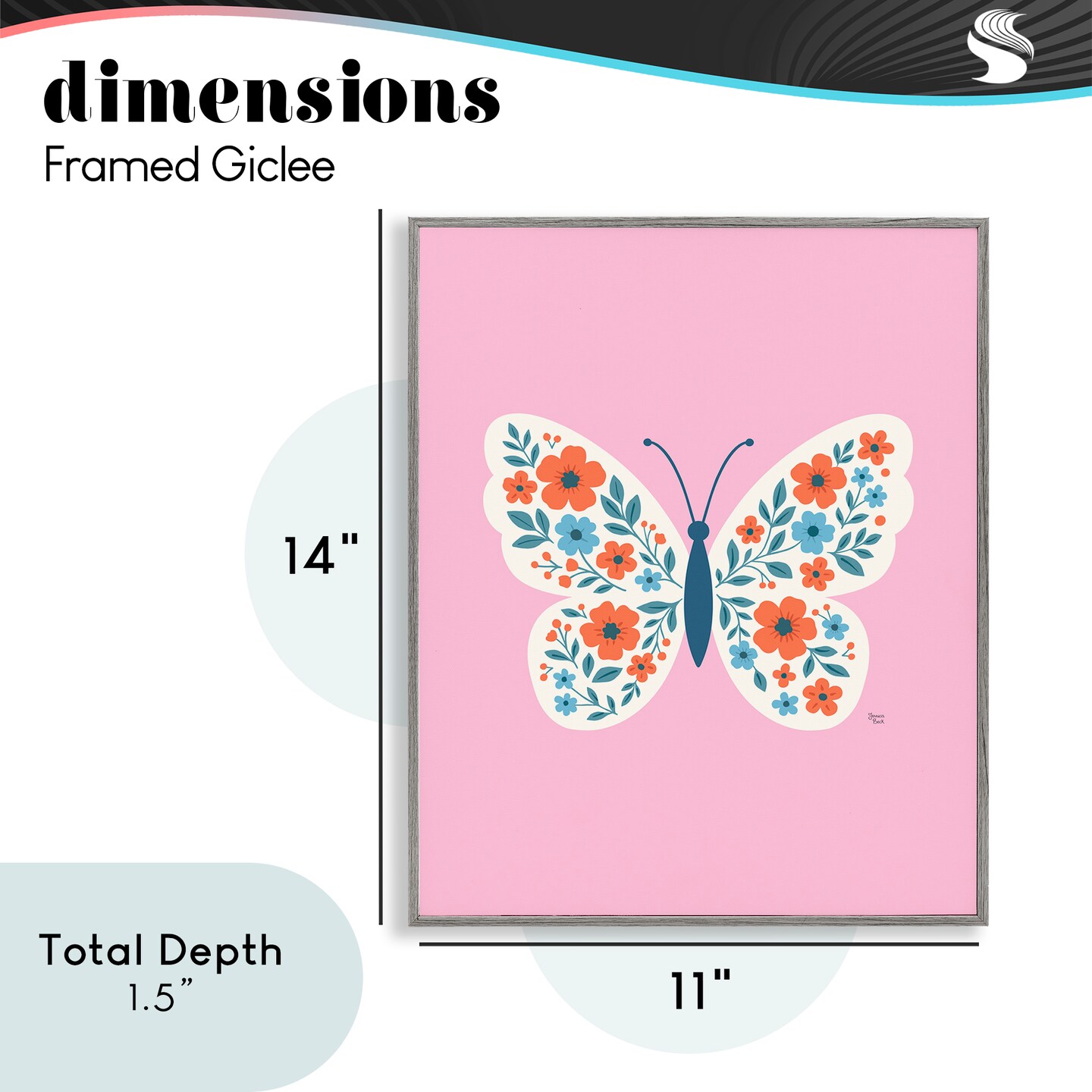 Stupell Industries Boho Pink Floral Butterfly Framed Giclee, design by Jessica Beck