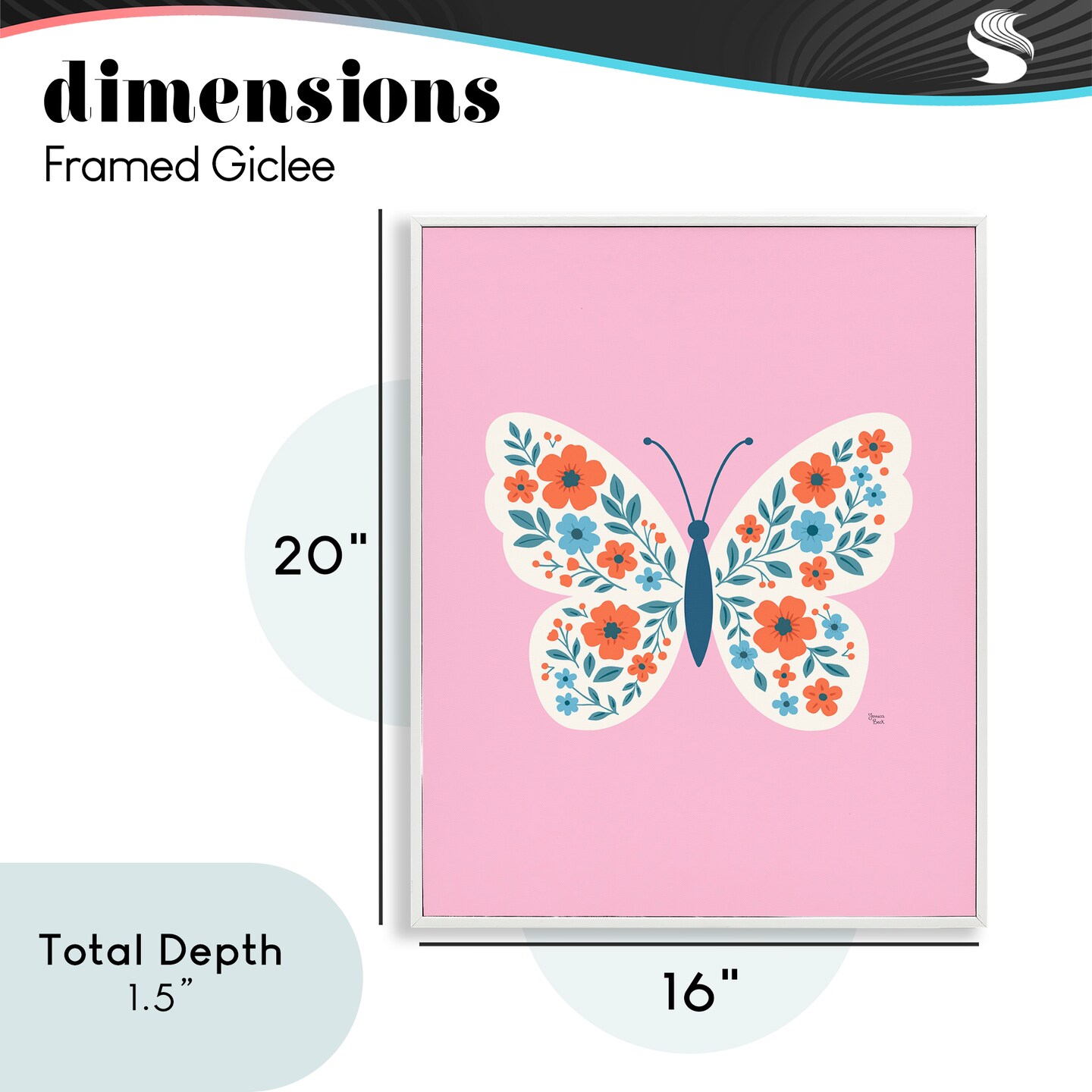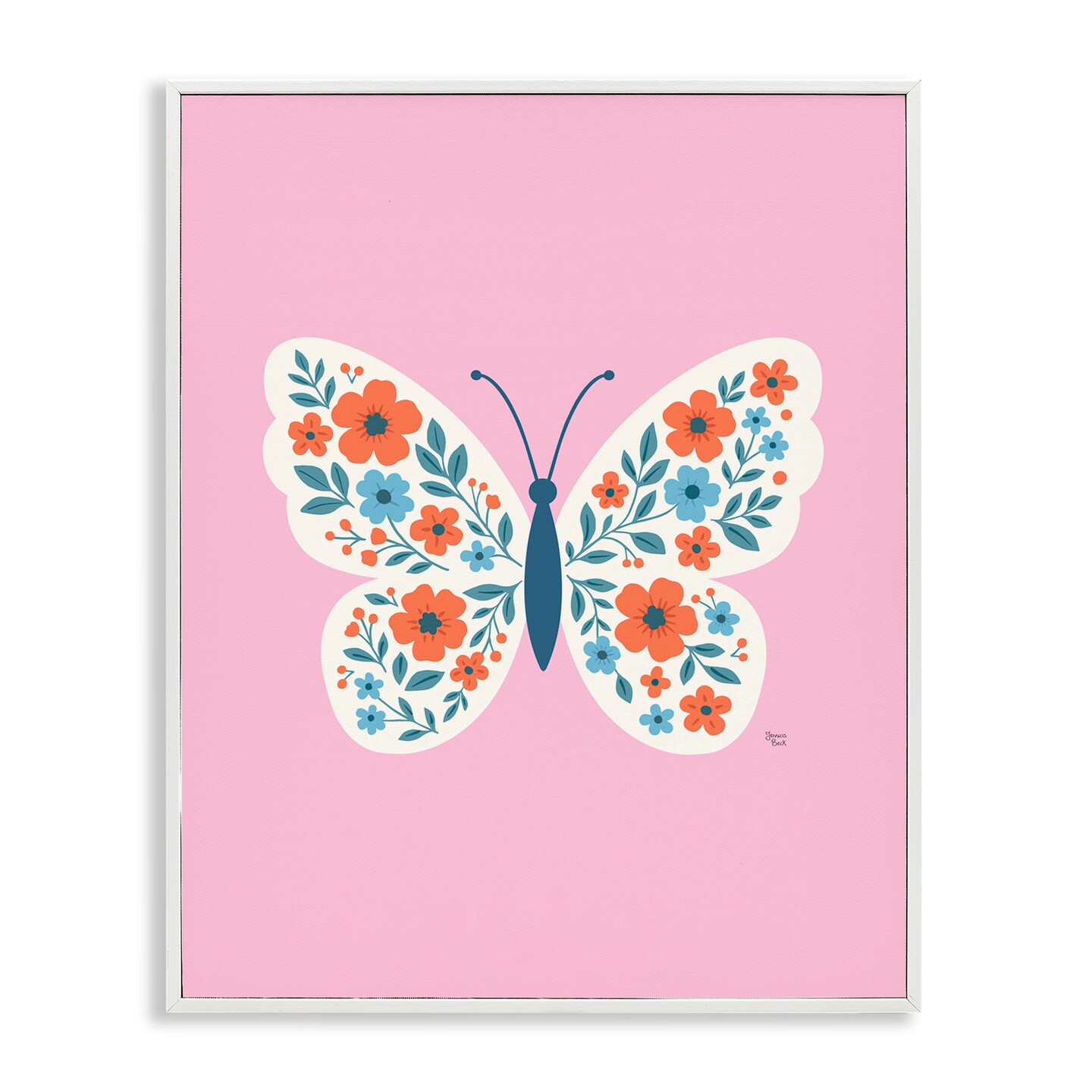 Stupell Industries Boho Pink Floral Butterfly Framed Giclee, design by Jessica Beck