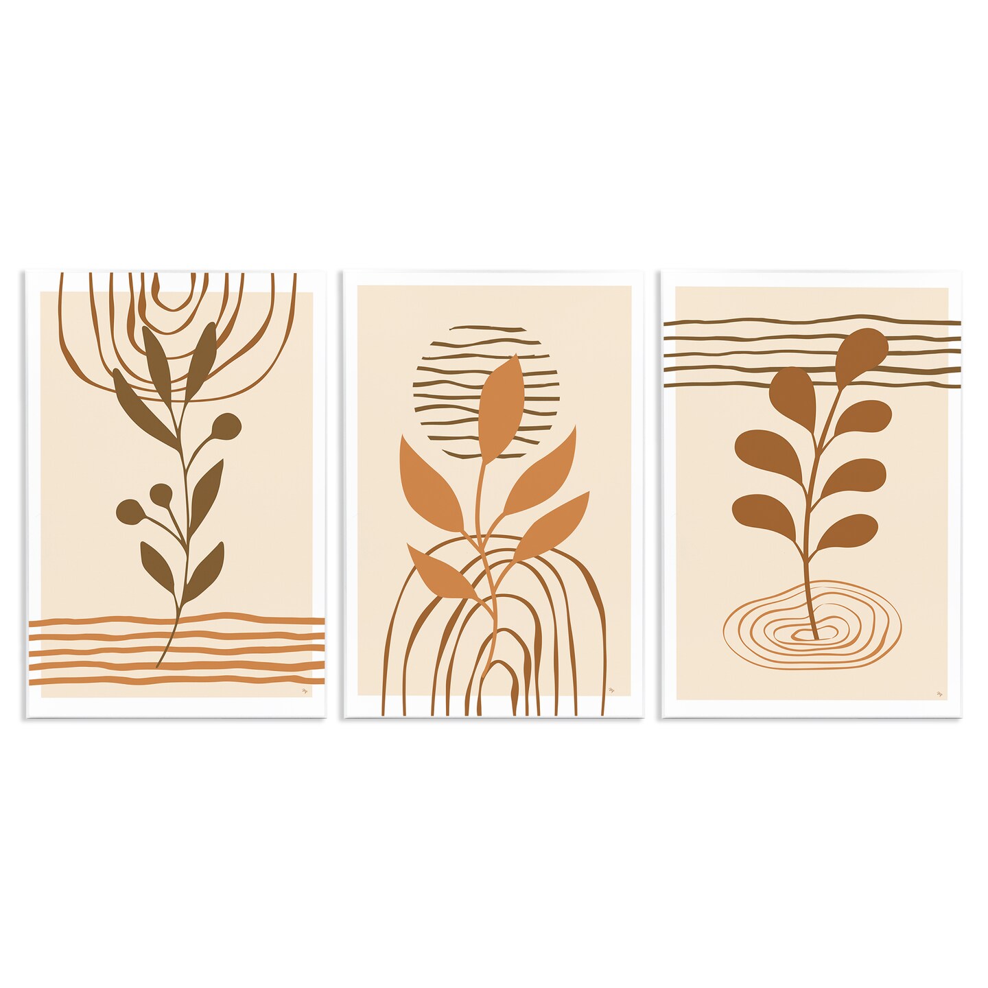 Stupell Industries Boho Sprigs & Line Patterns 3pc Wall Plaque Art Set Design by Martina Pavlova