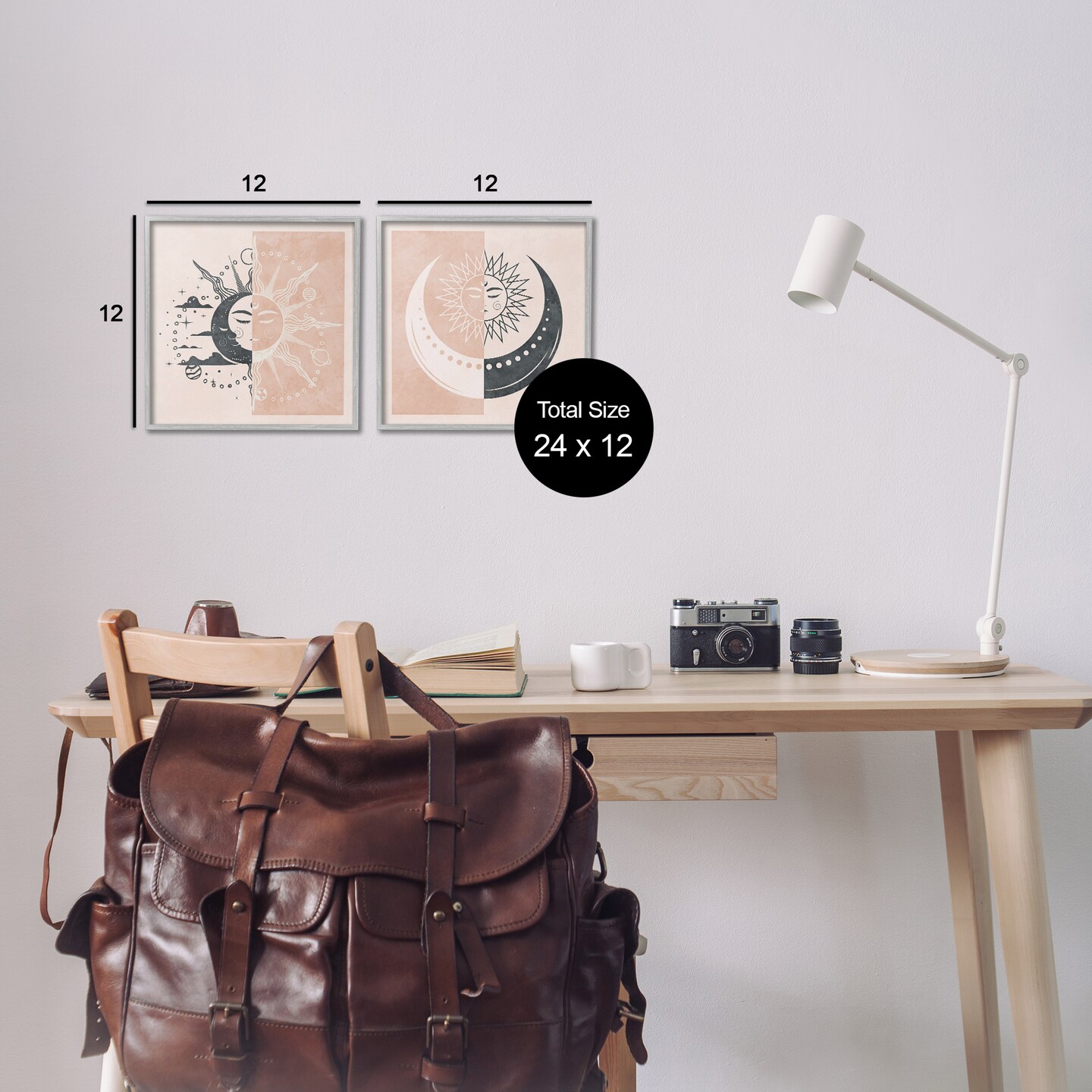 Stupell Industries Boho Two Tone Moon Sun 2pc Framed Giclee Wall Art Set Design by Nina Blue