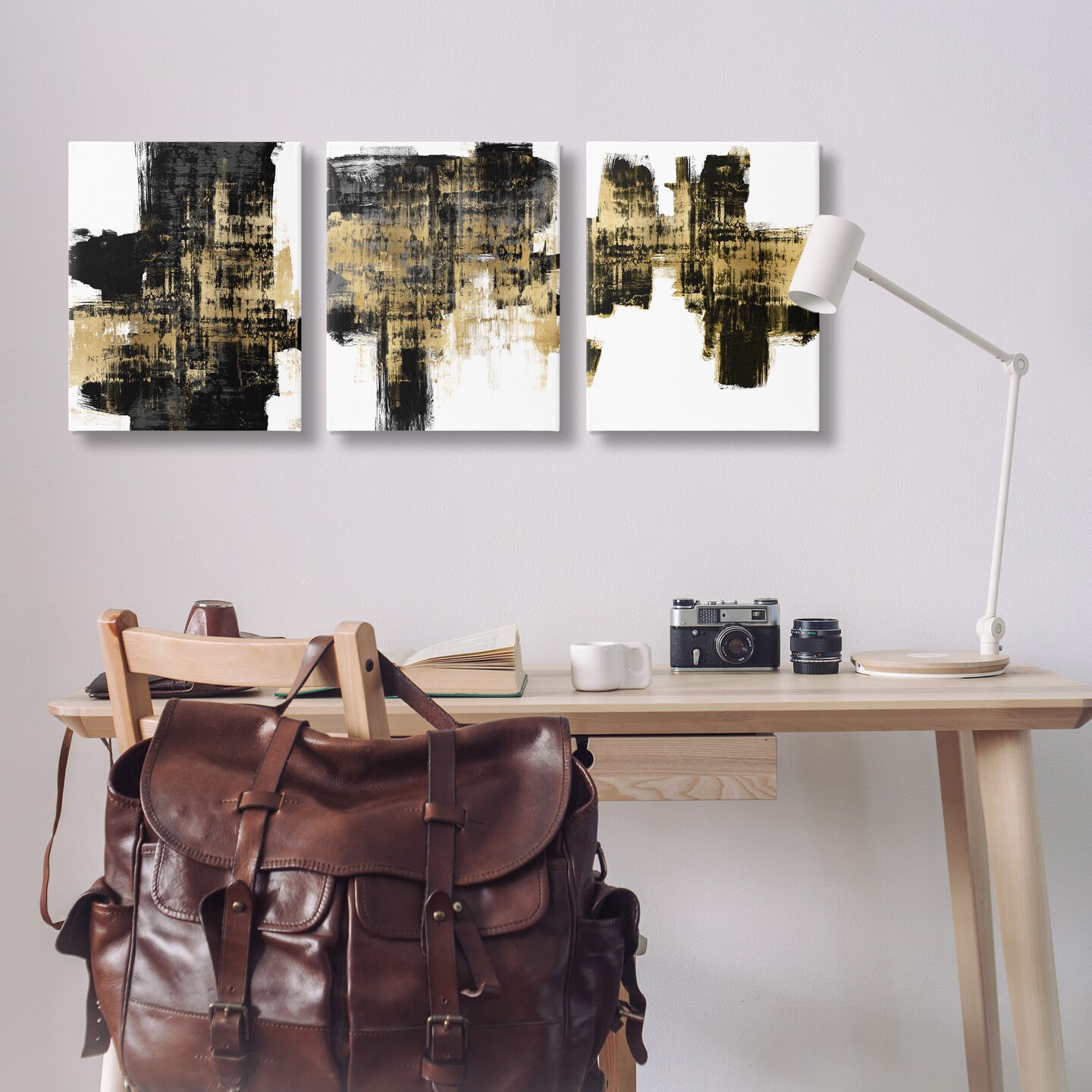 Stupell Industries Bold Black Brushstrokes with Gold Canvas Wall Art