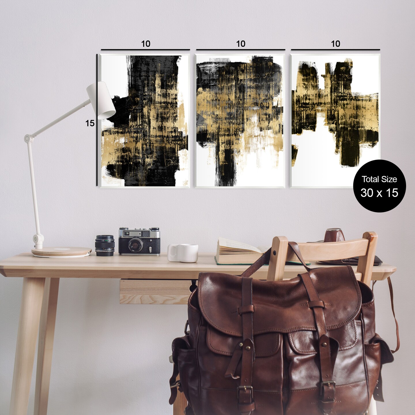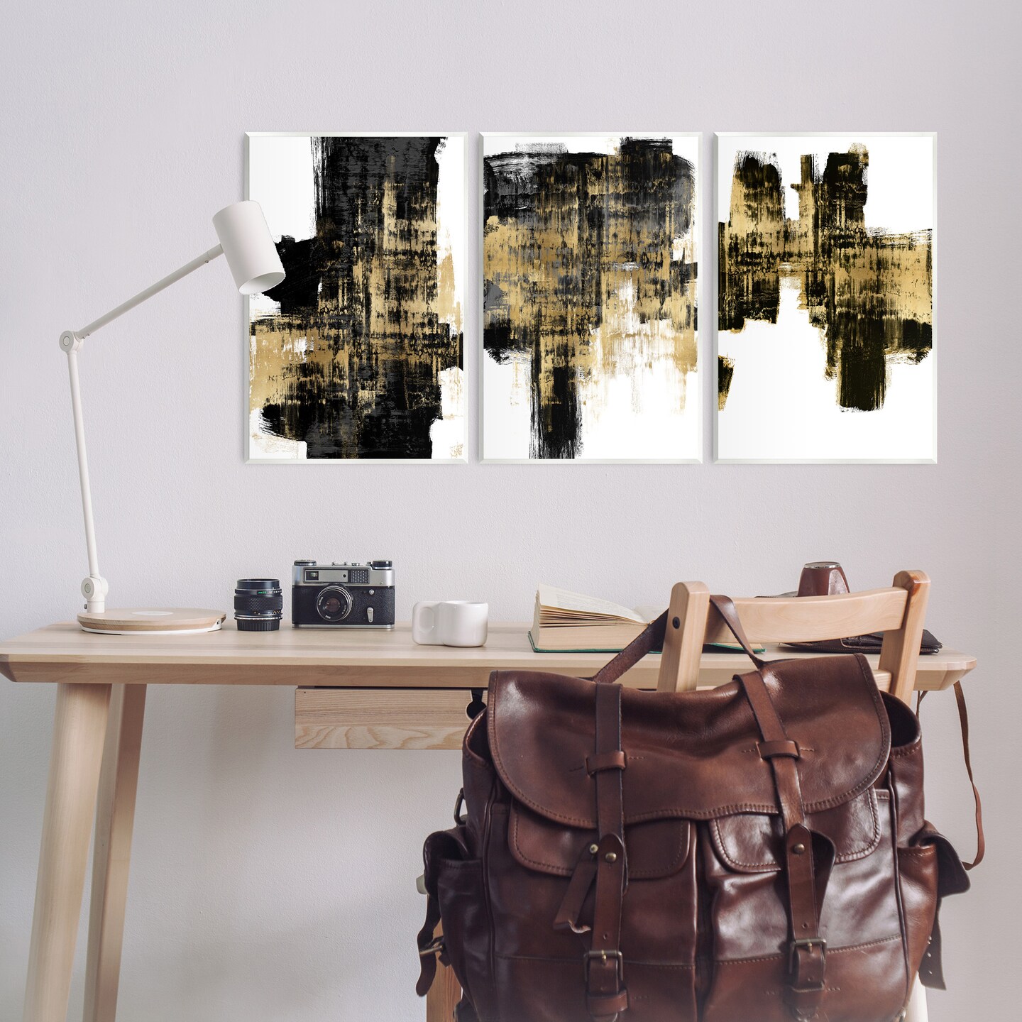 Stupell Industries Bold Black Brushstrokes with Gold Wall Plaque Art