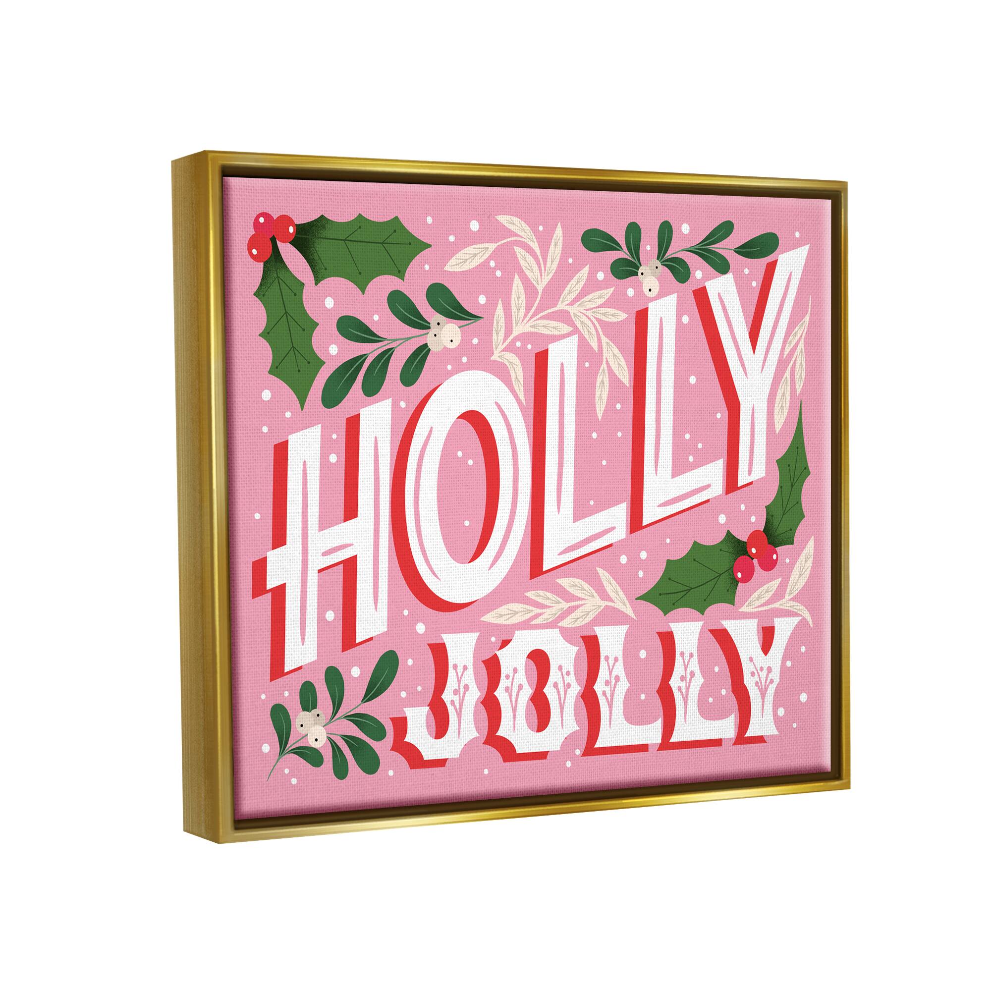 Stupell Industries Bold Pink Holly Jolly Phrase Framed Floater Canvas Wall Art