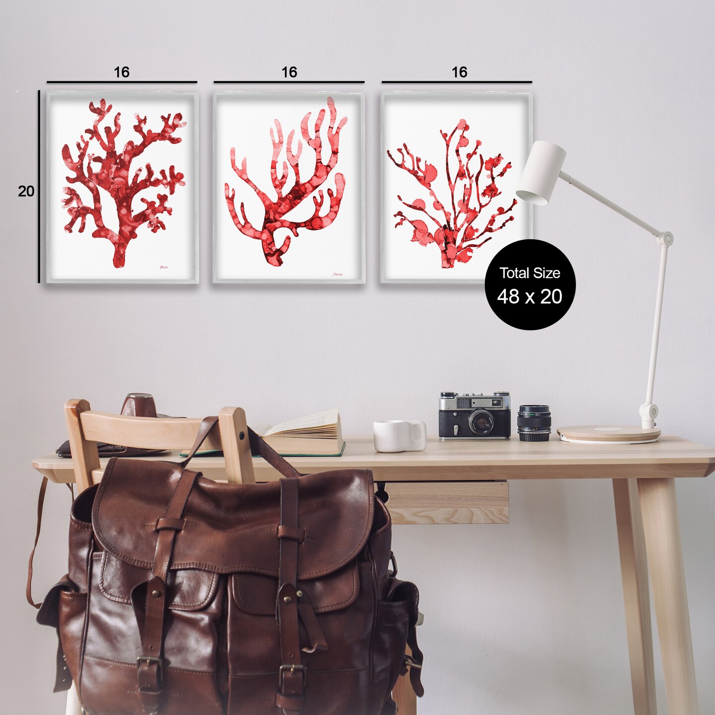 Stupell Industries Bold Red Coral 3pc Framed Giclee Wall Art Set Design by Patti Mann