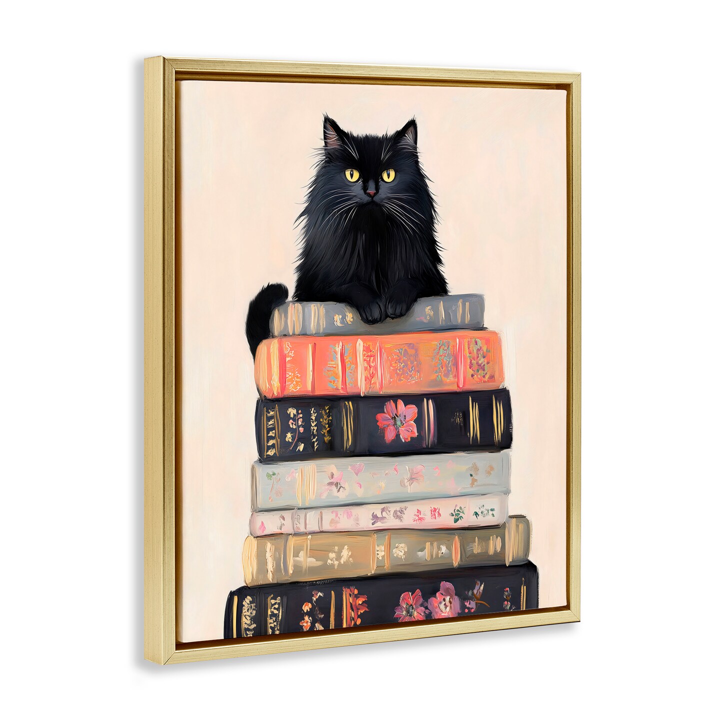 Stupell Industries Book Stack Black Cat Black Framed Floater Canvas Wall Art, design by Arlington Prints