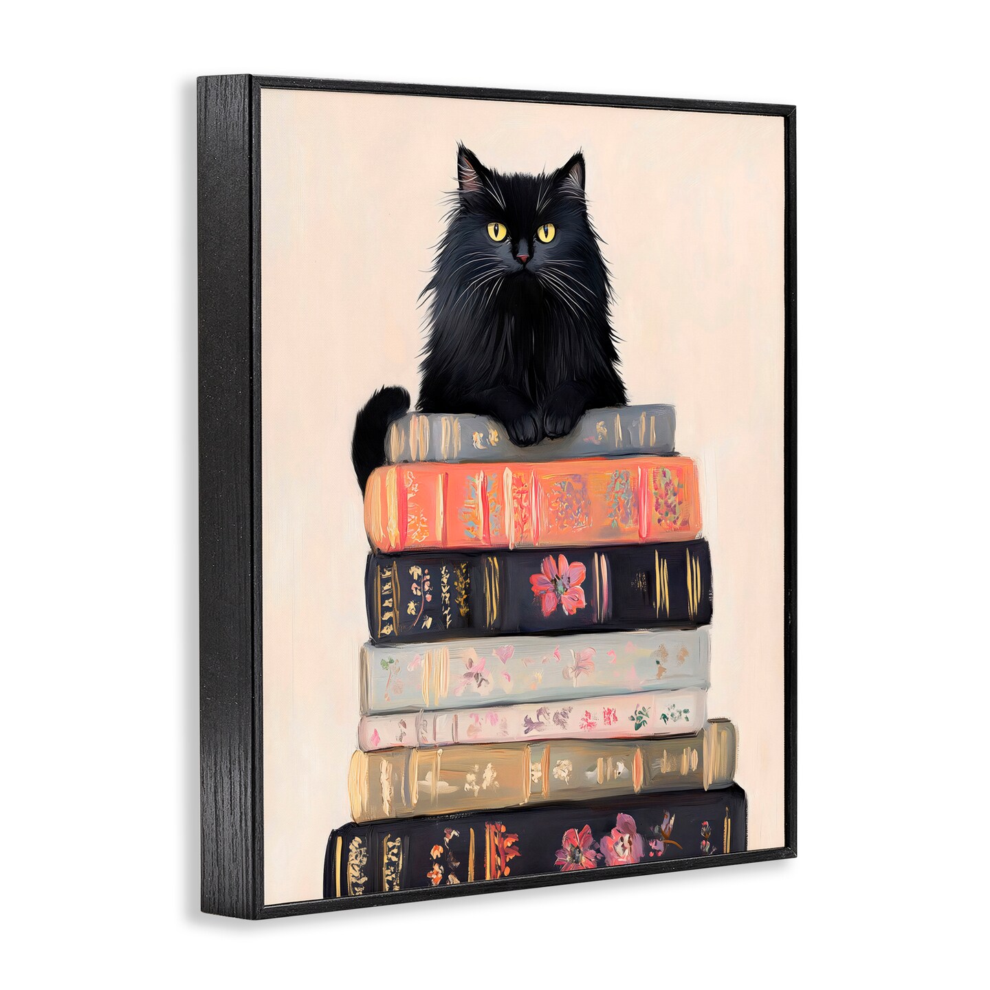 Stupell Industries Book Stack Black Cat Black Framed Giclee Art, design by Arlington Prints
