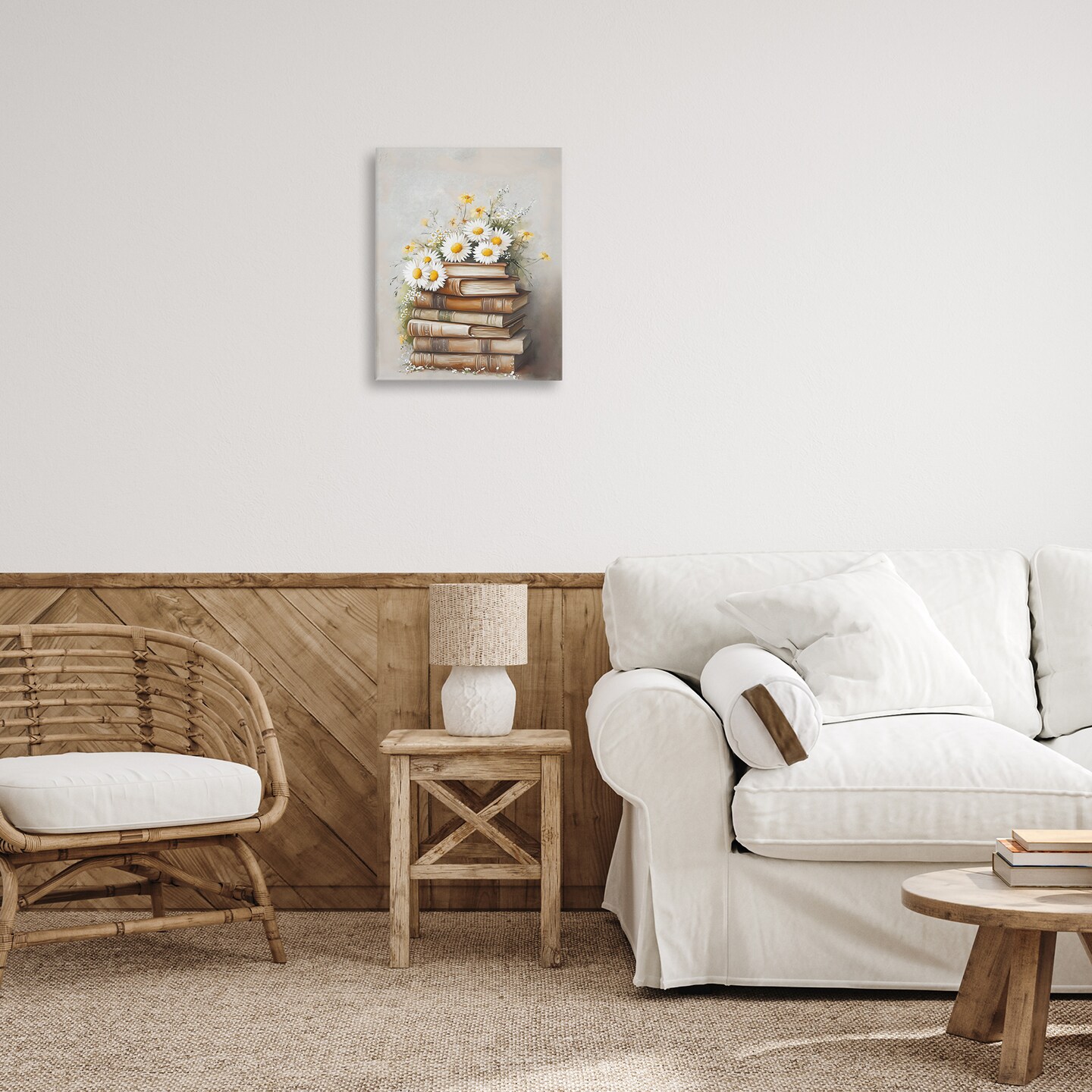 Stupell Industries Book Stack with Daisies Canvas Wall Art, design by Arlington Prints