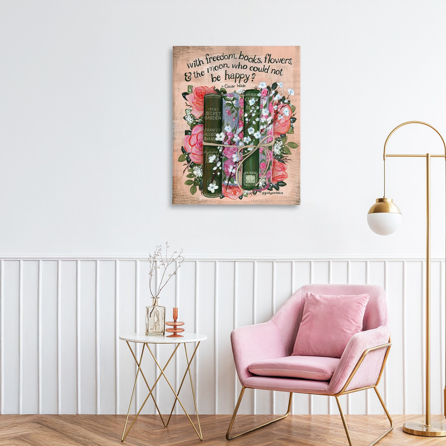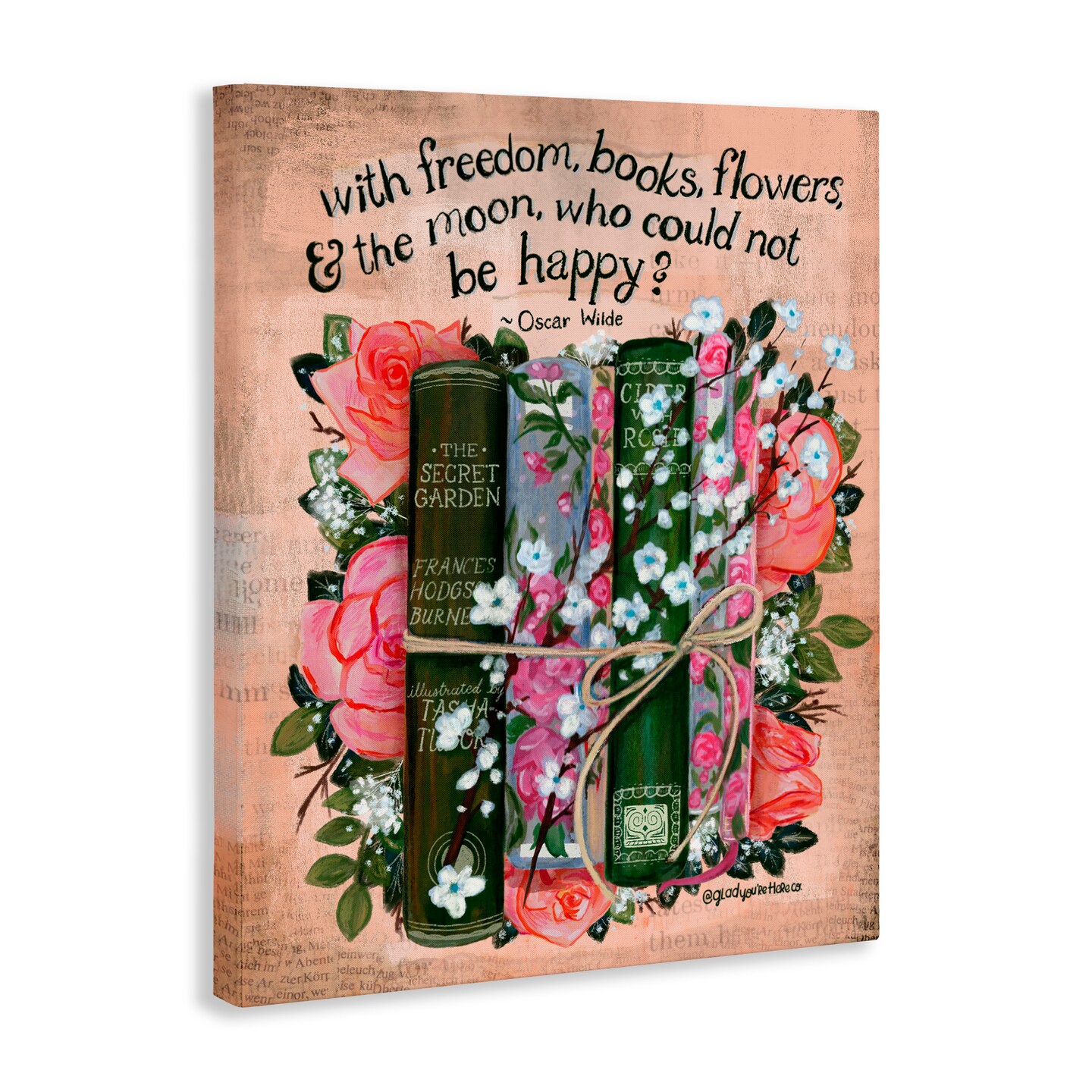 Stupell Industries Bookish Quote with Florals Canvas, design by Glad You're Here Co.