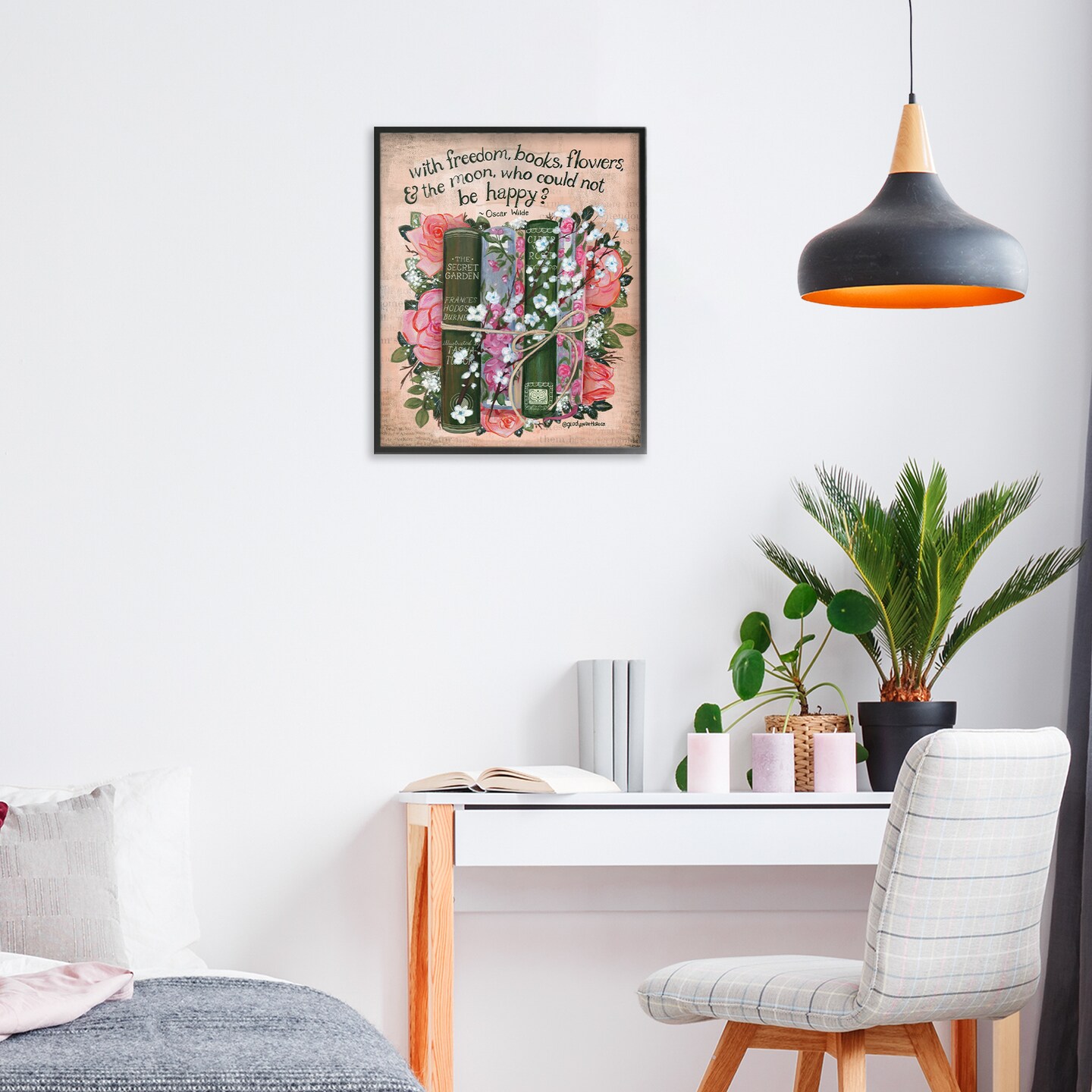 Stupell Industries Bookish Quote with Florals Framed Giclee, design by Glad You're Here Co.