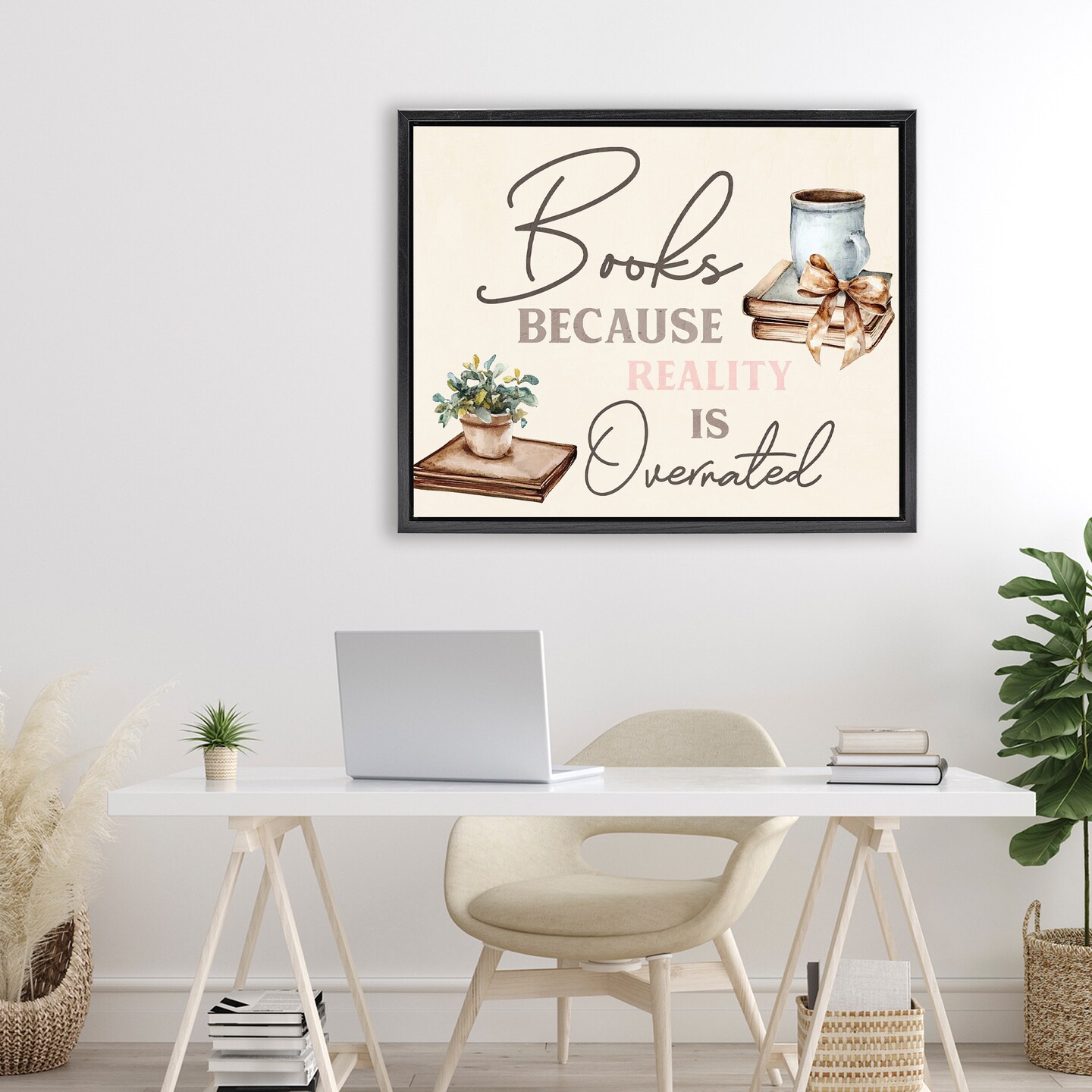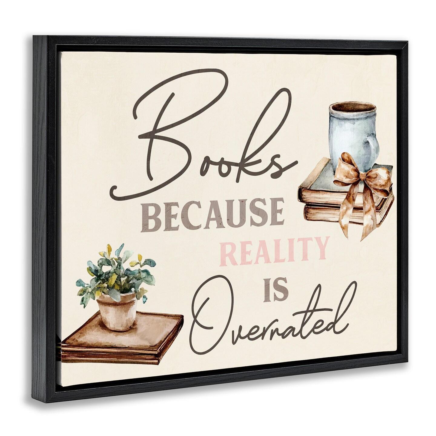 Stupell Industries Books Because Reality Overrated Floating Frame, design by Kim Allen