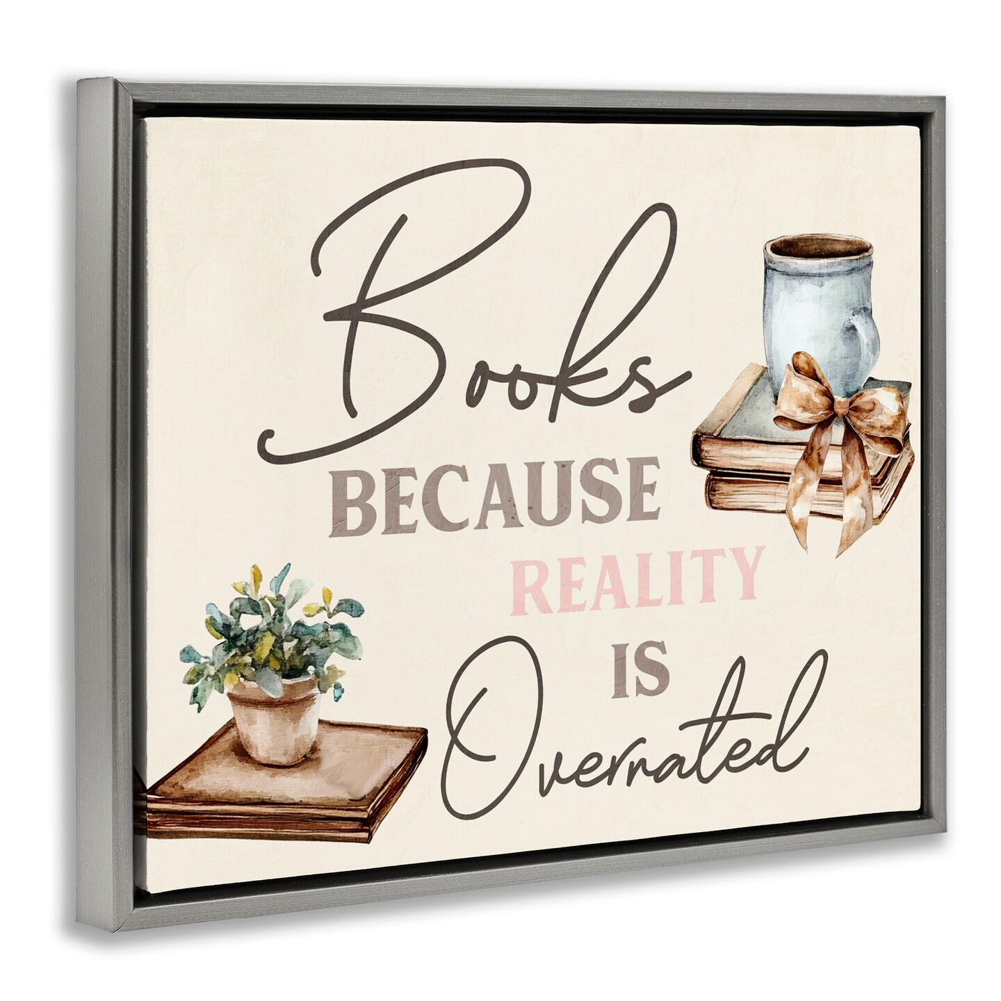 Stupell Industries Books Because Reality Overrated Floating Frame, design by Kim Allen