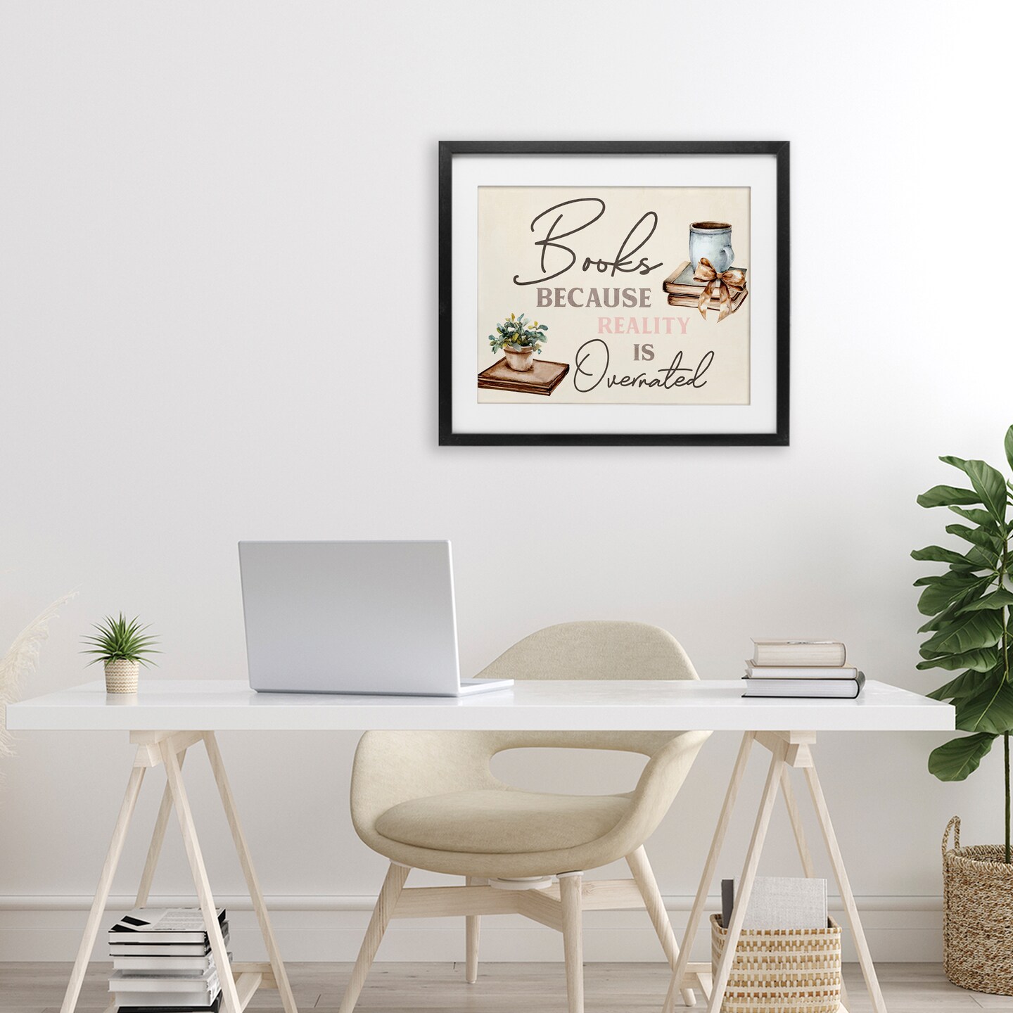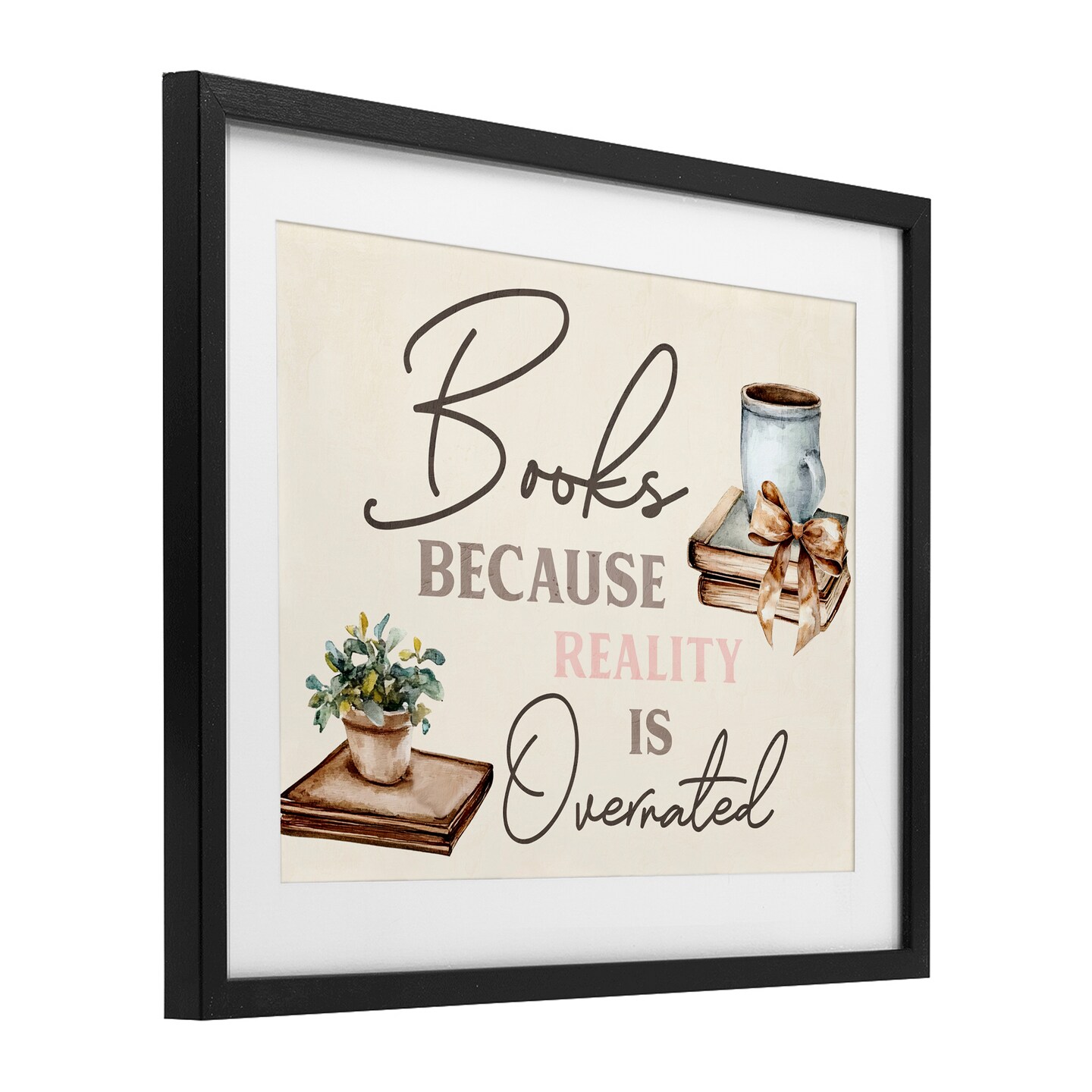 Stupell Industries Books Because Reality Overrated Framed Print Under Glass, design by Kim Allen