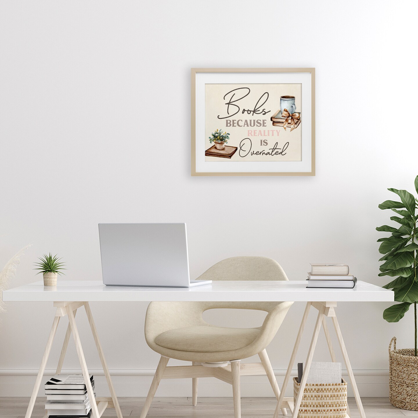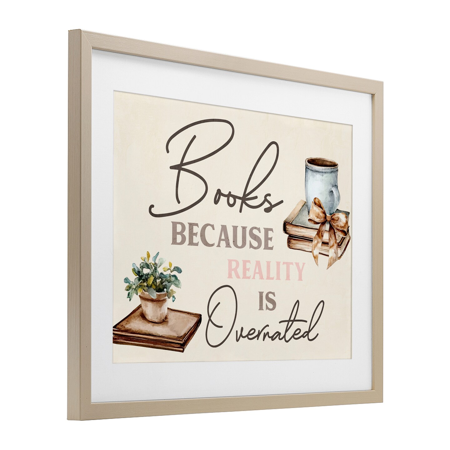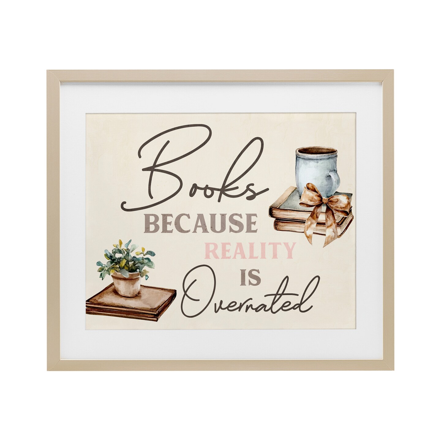 Stupell Industries Books Because Reality Overrated Framed Print Under Glass, design by Kim Allen