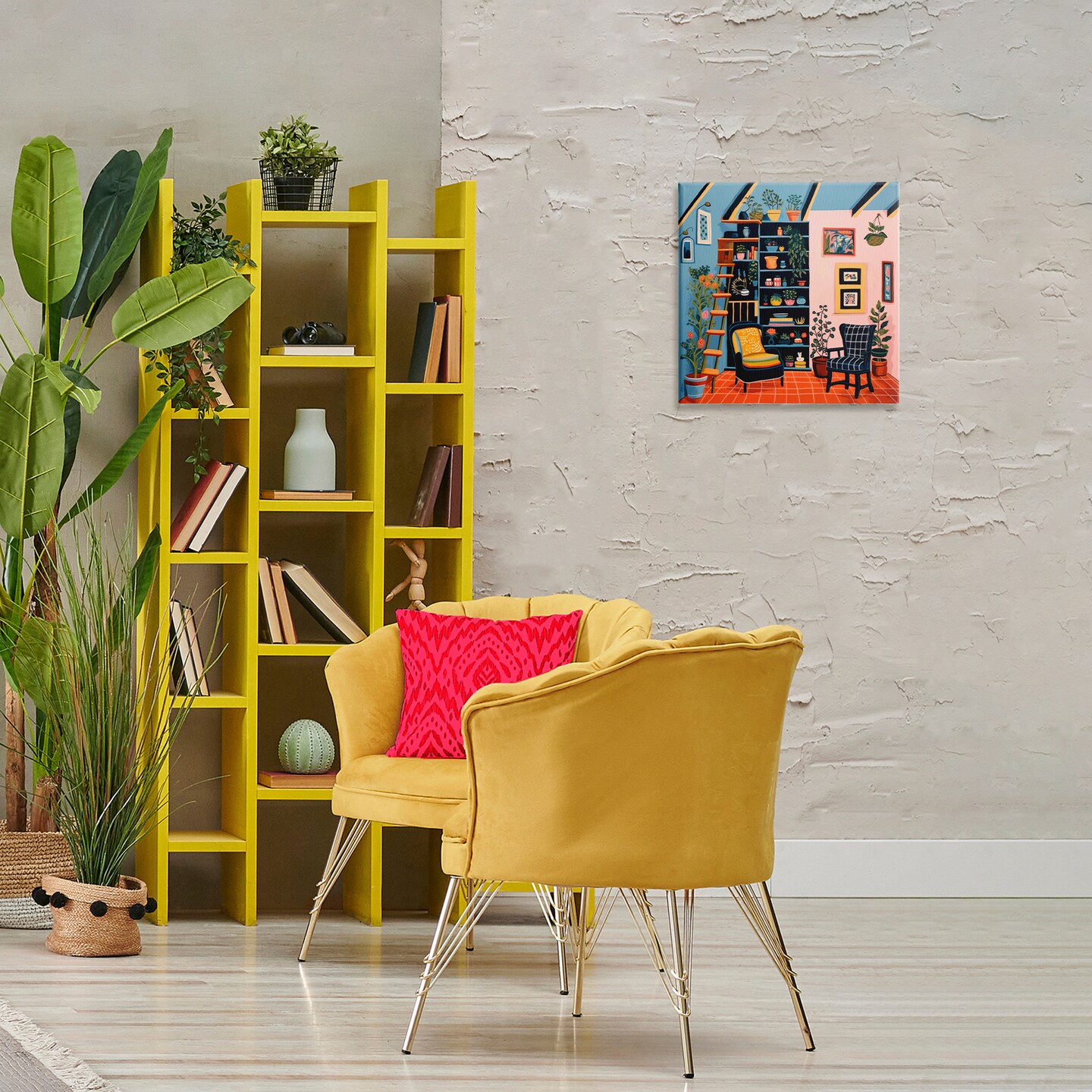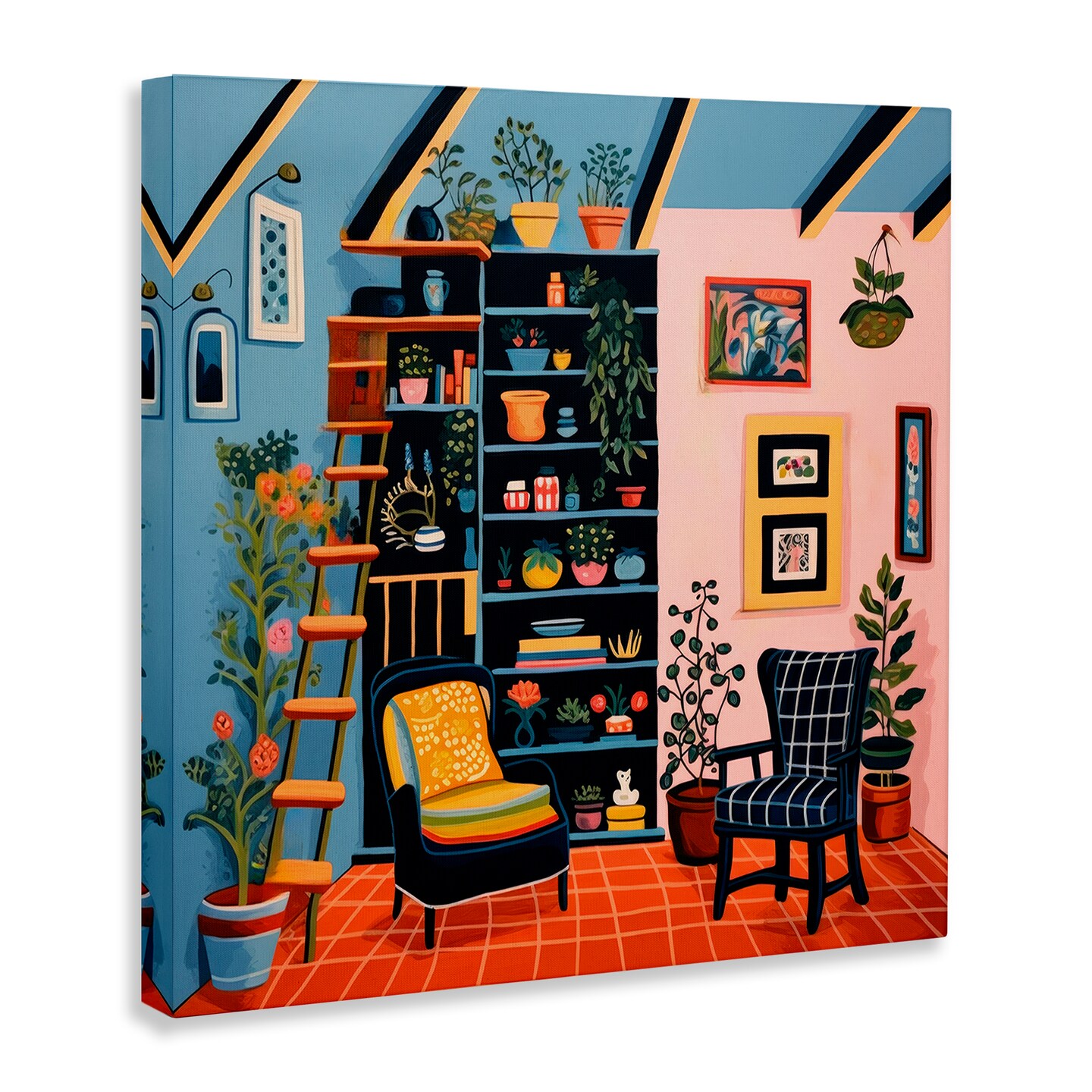Stupell Industries Bookshelf Scene & Plants Canvas Wall Art Design by Lazar Studio
