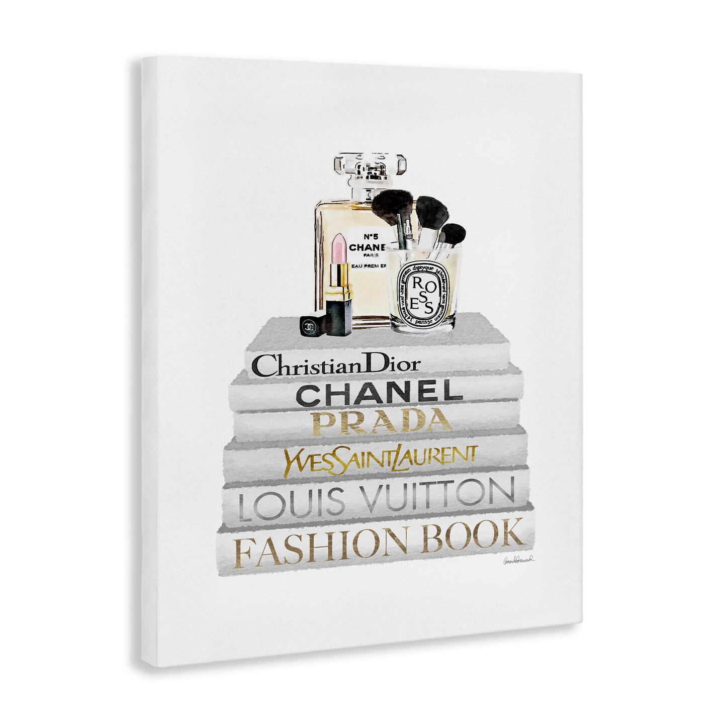 Stupell Industries Bookstack with Makeup Accessories Canvas Wall Art