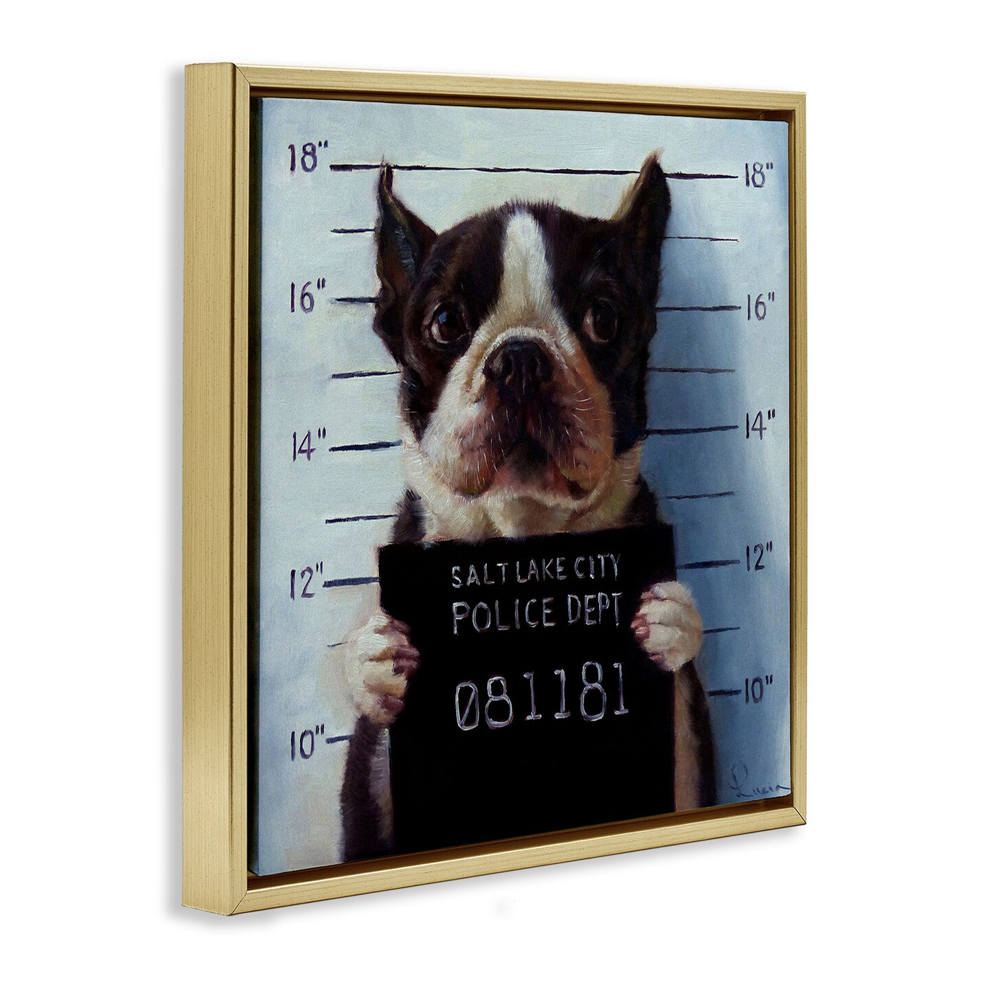 Stupell Industries Boston Terrier Jail Convicted Mugshot Framed Floater Canvas Wall Art