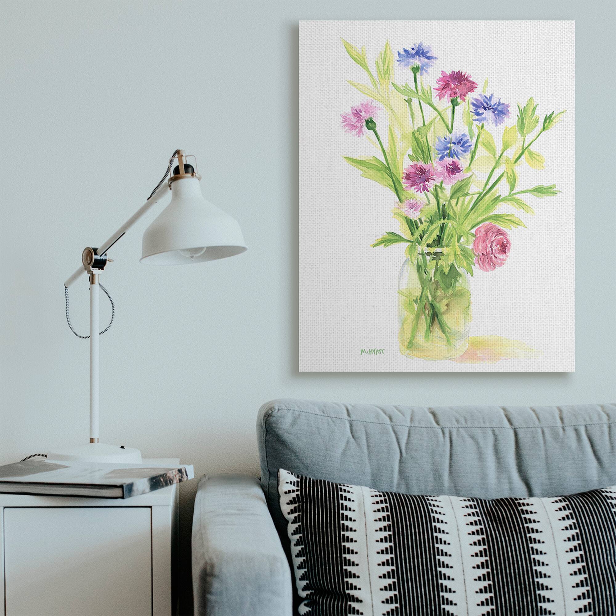 Stupell Industries Bouquet of Wildflowers Soft Green Purple Blue Watercolor Canvas Wall Art