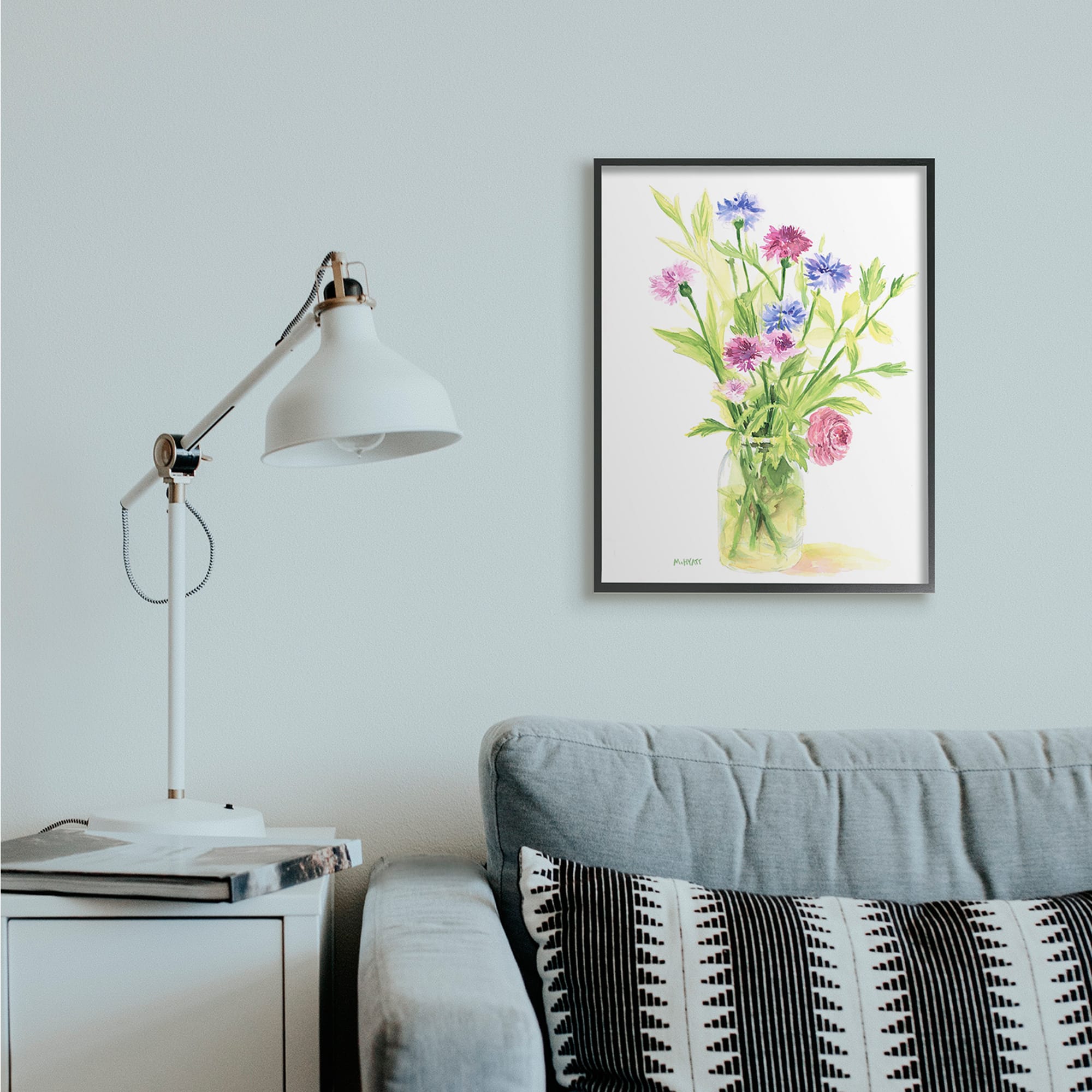 Stupell Industries Bouquet of Wildflowers Soft Green Purple Blue Watercolor in Black Frame Wall Art