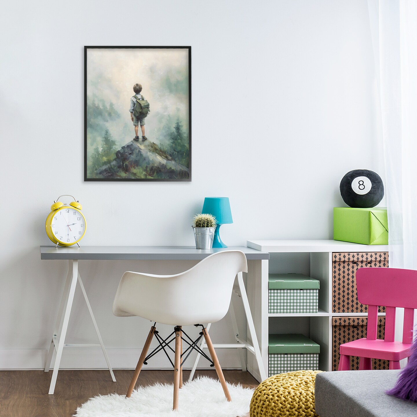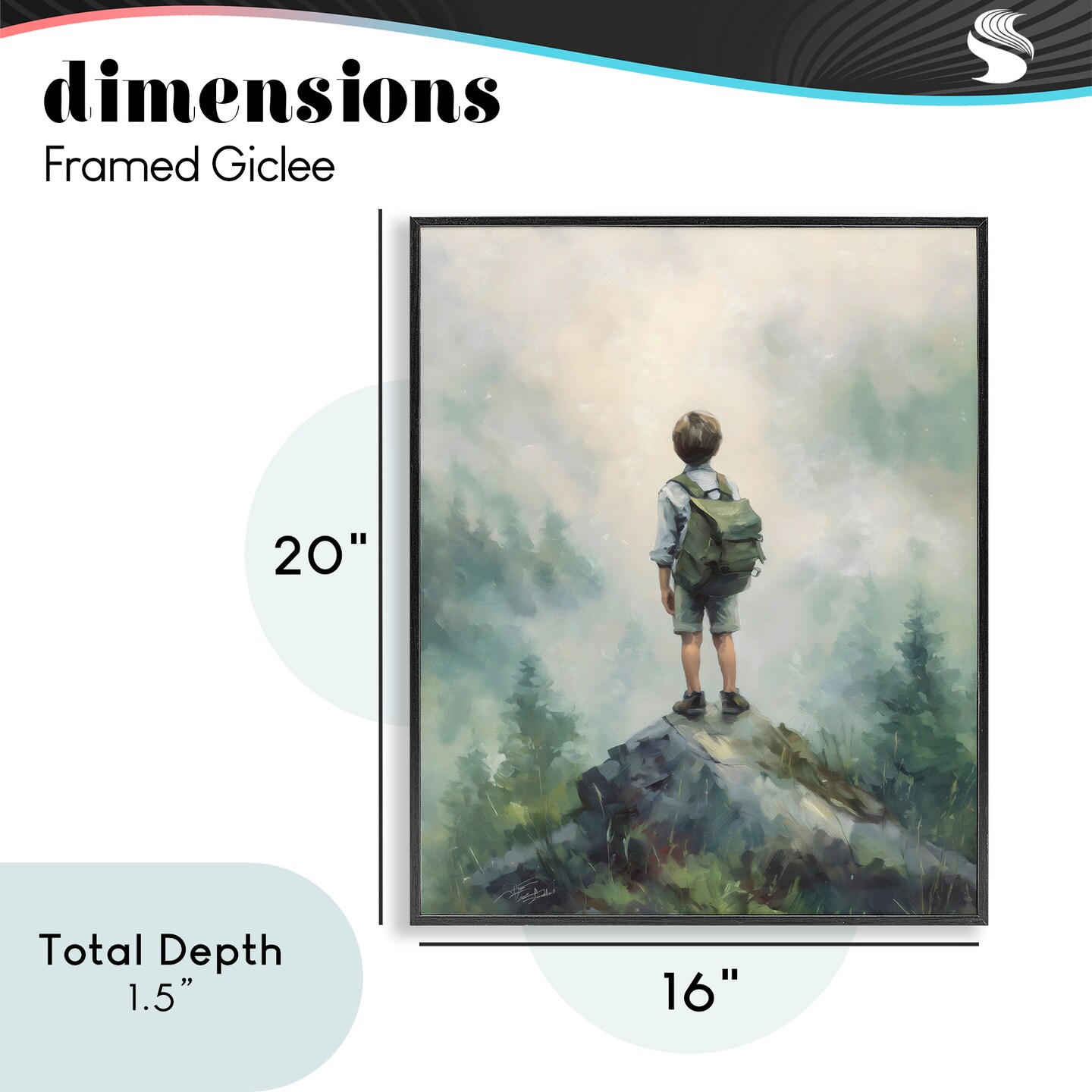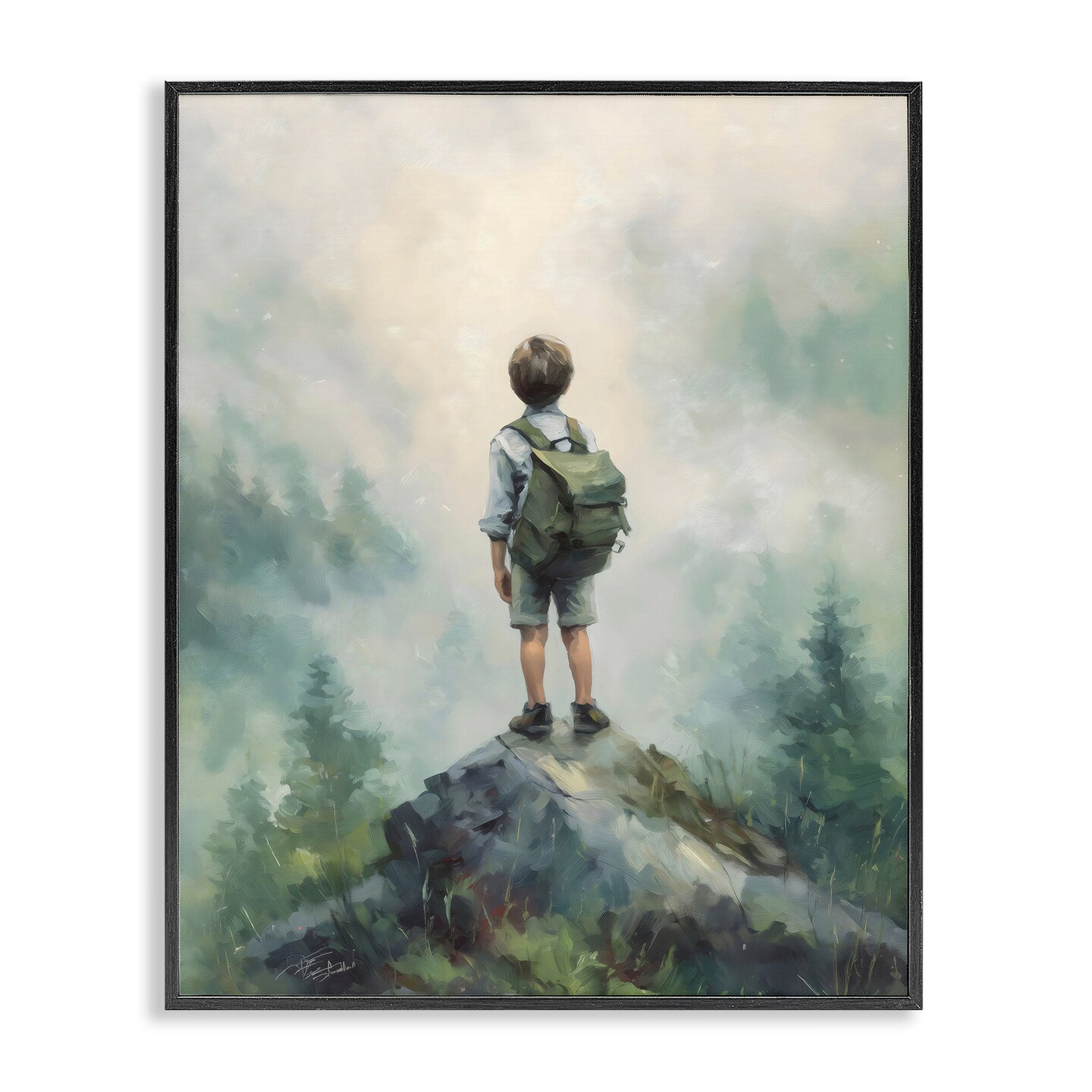 Stupell Industries Boy Adventurer Atop Mountain Framed Giclee, design by Arlington Prints