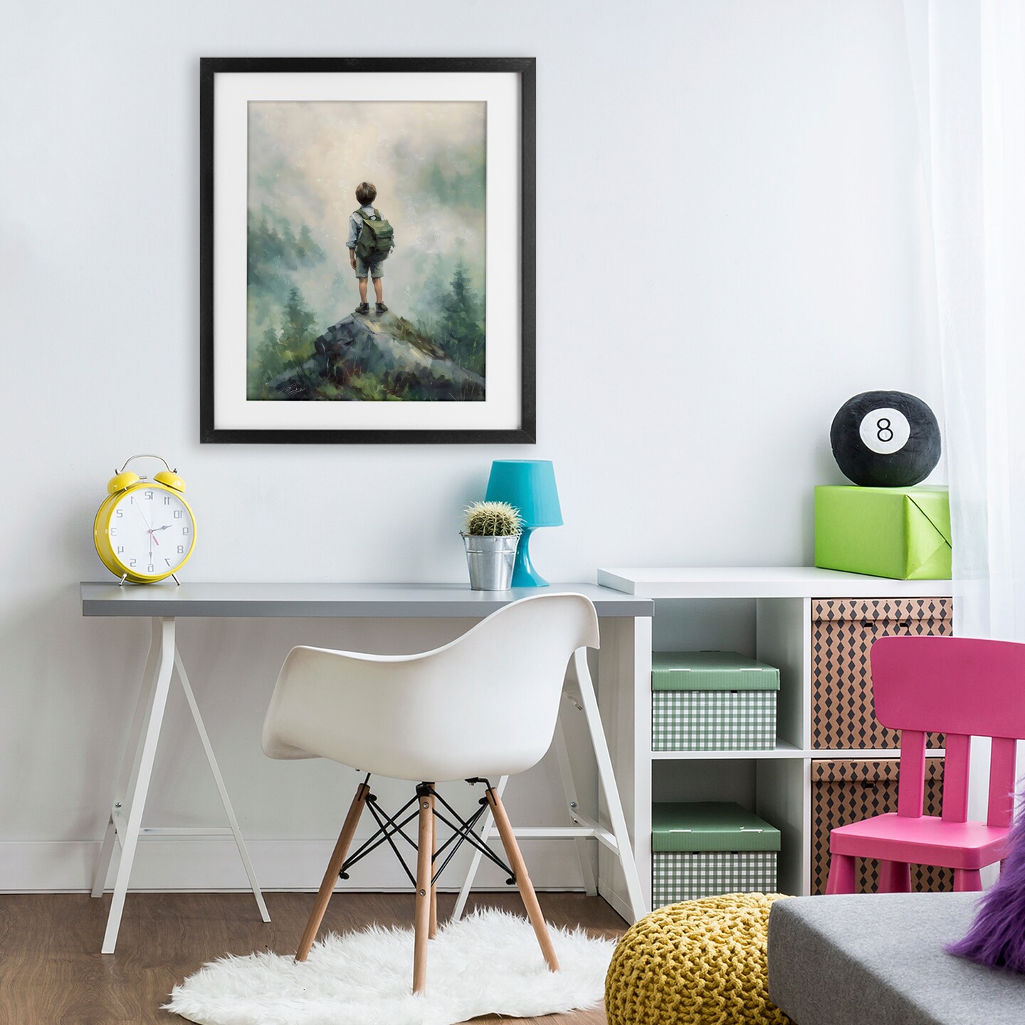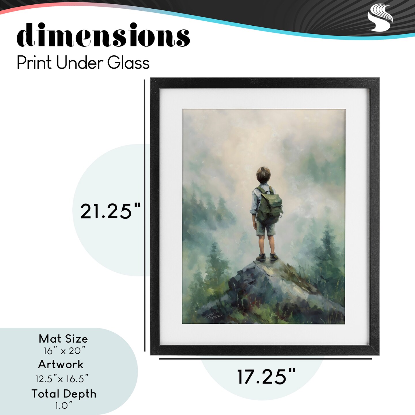 Stupell Industries Boy Adventurer Atop Mountain Framed Print Under Glass, design by Arlington Prints