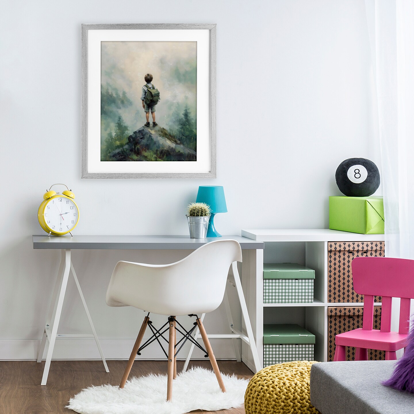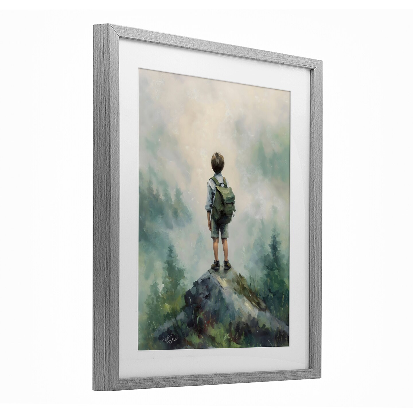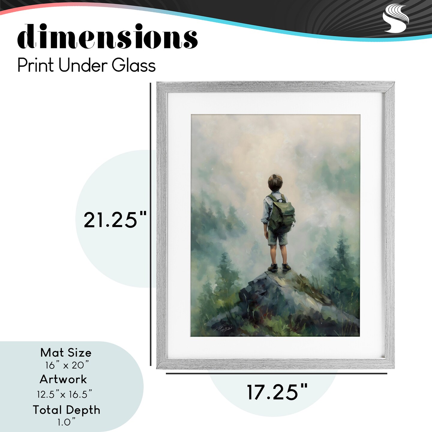 Stupell Industries Boy Adventurer Atop Mountain Framed Print Under Glass, design by Arlington Prints
