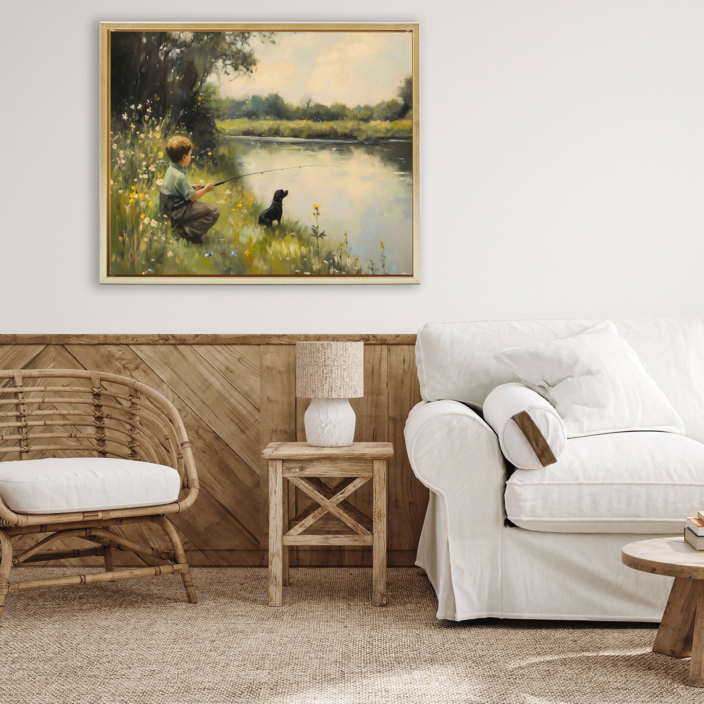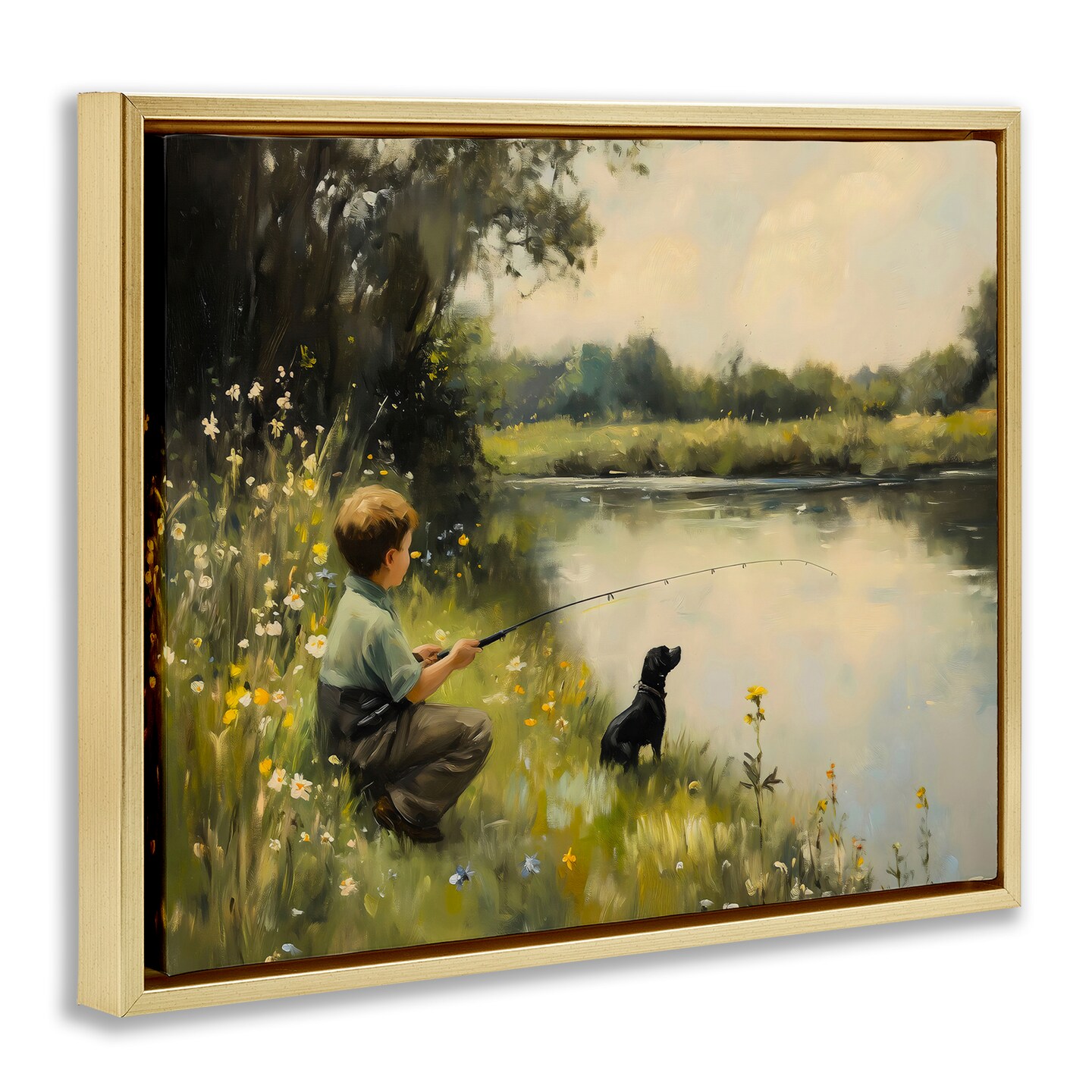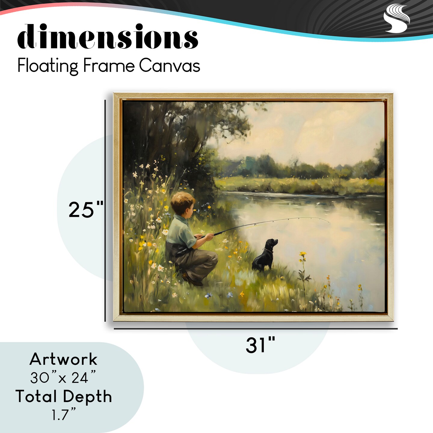 Stupell Industries Boy & Puppy Fishing Floating Frame, design by Arlington Prints