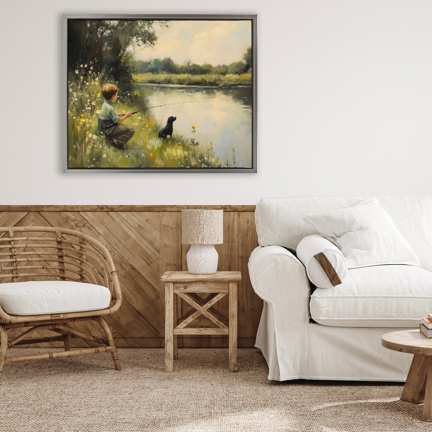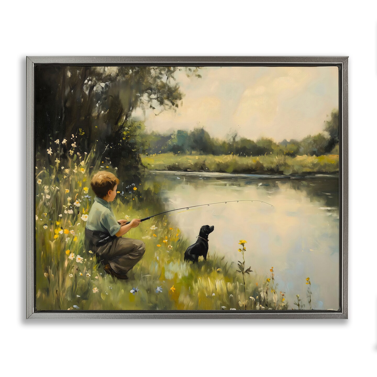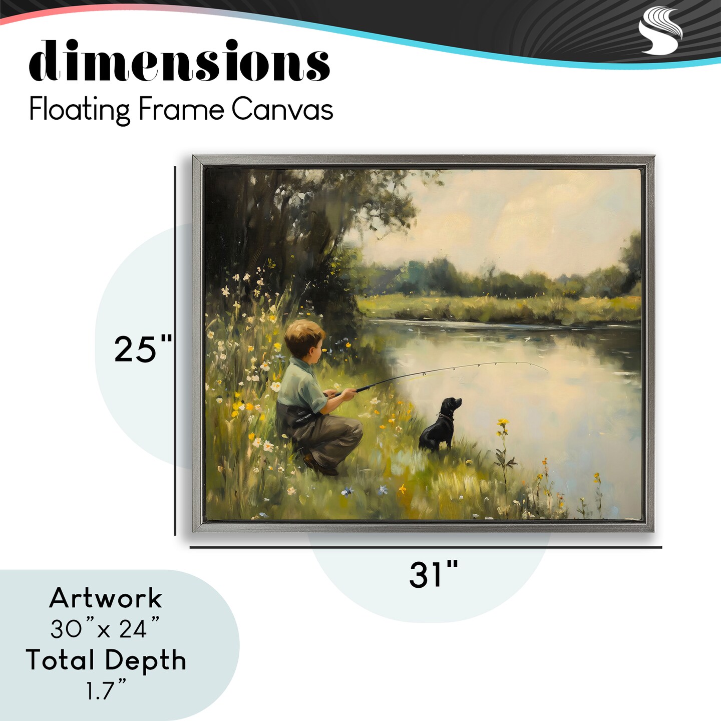 Stupell Industries Boy & Puppy Fishing Floating Frame, design by Arlington Prints
