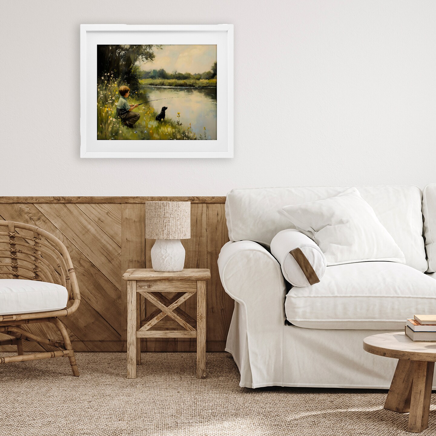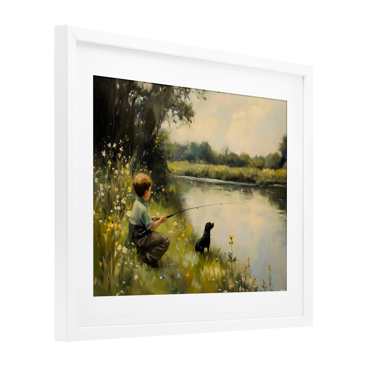 Stupell Industries Boy & Puppy Fishing Framed Print Under Glass, design by Arlington Prints