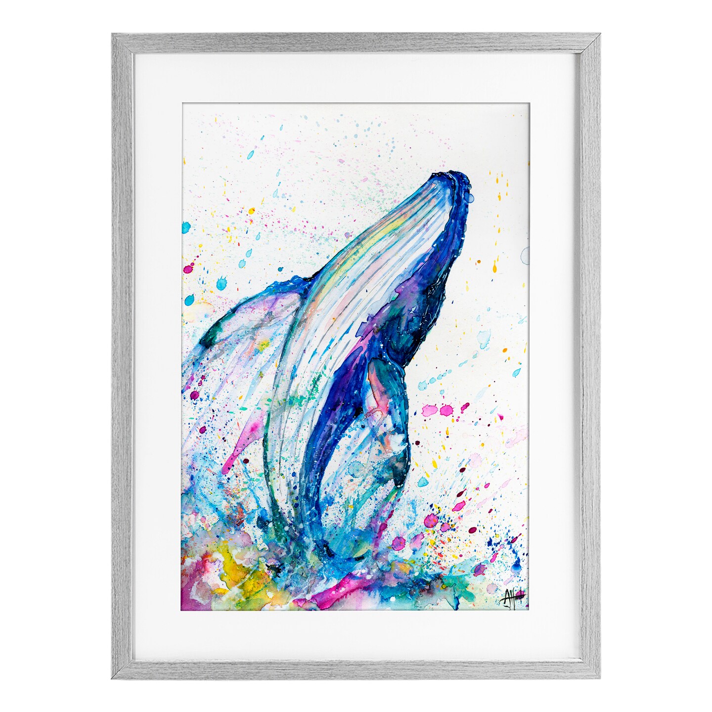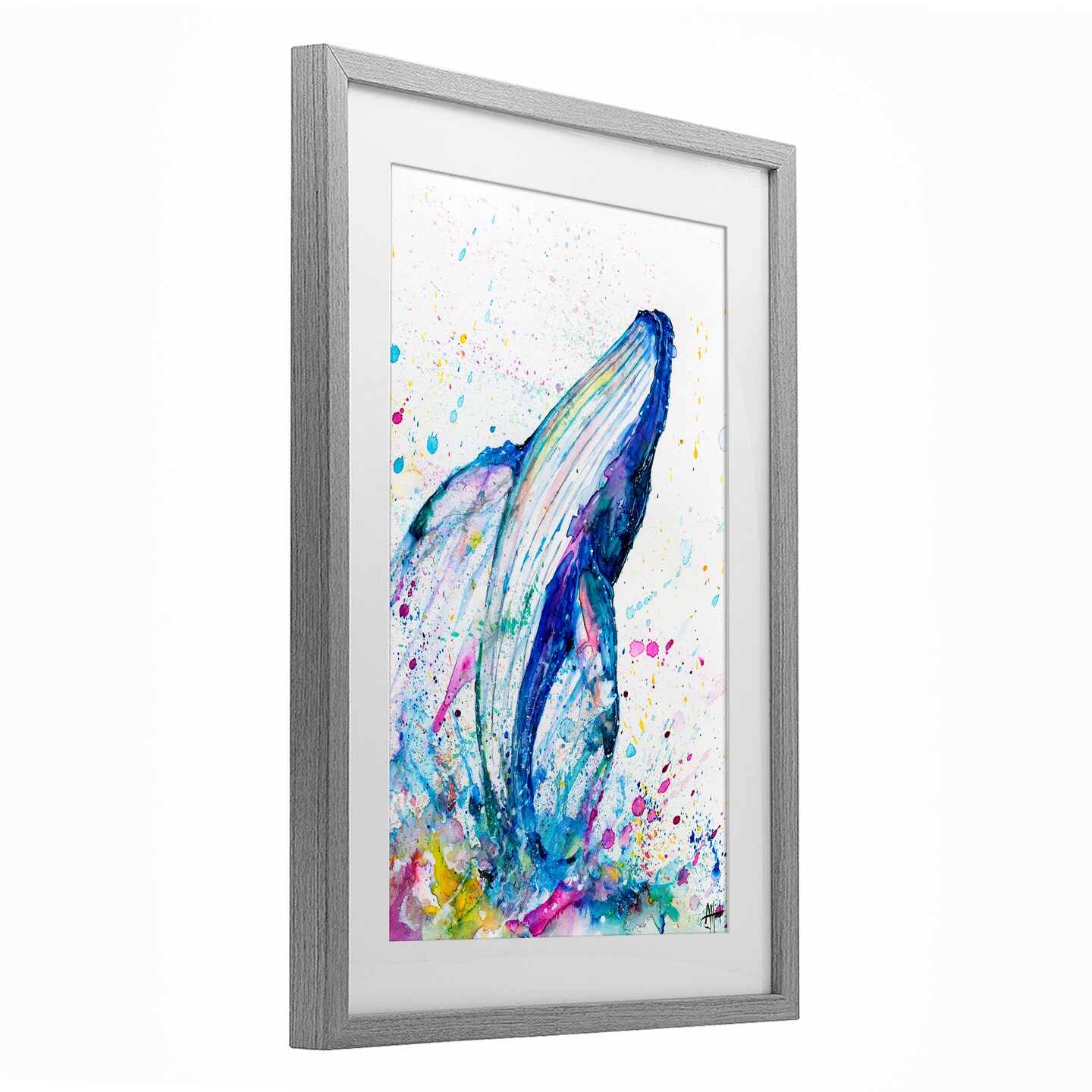 Stupell Industries Breech Whale with Splatter Framed Print Under Glass, design by Marc Allante