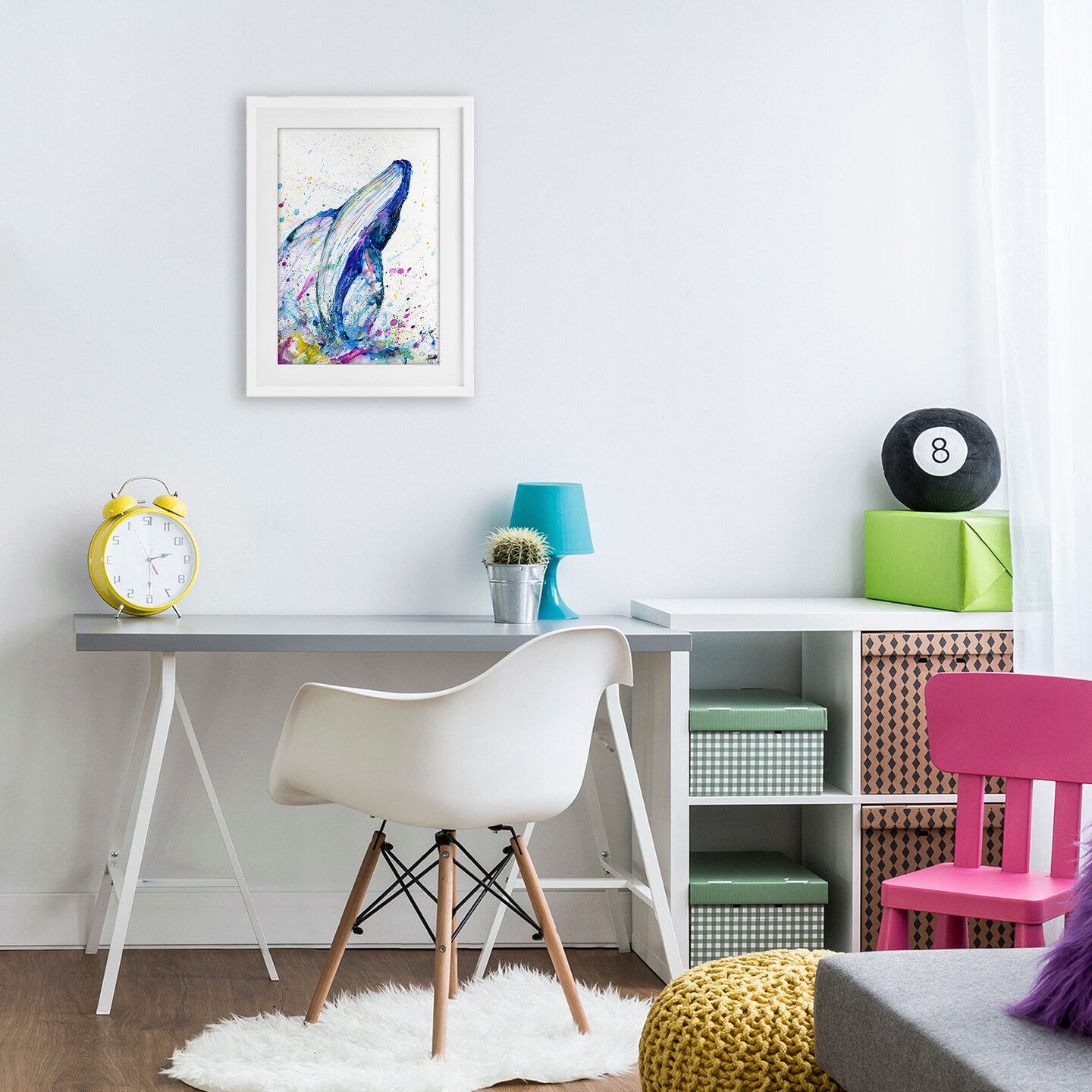 Stupell Industries Breech Whale with Splatter Framed Print Under Glass, design by Marc Allante