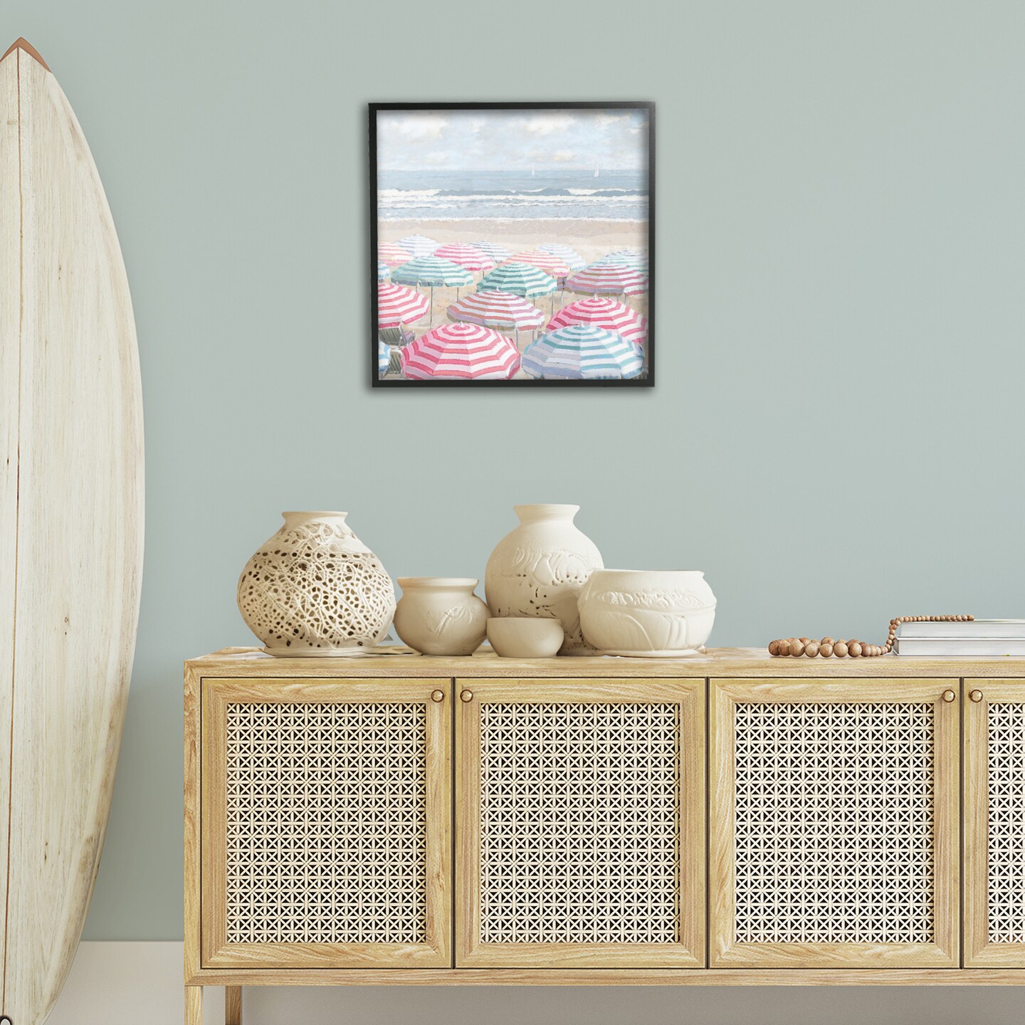 Stupell Industries Bright Beach Umbrellas Scene Framed Giclee Design by Amber Sterling