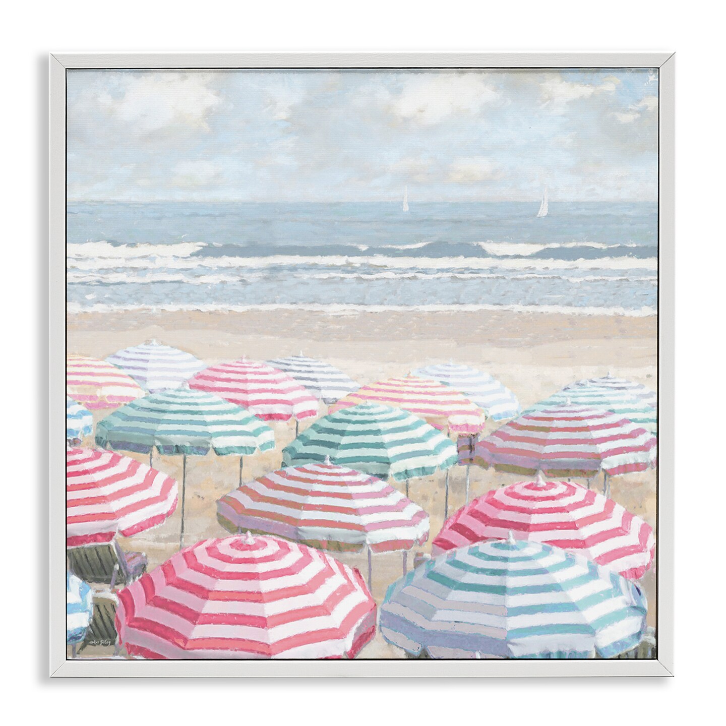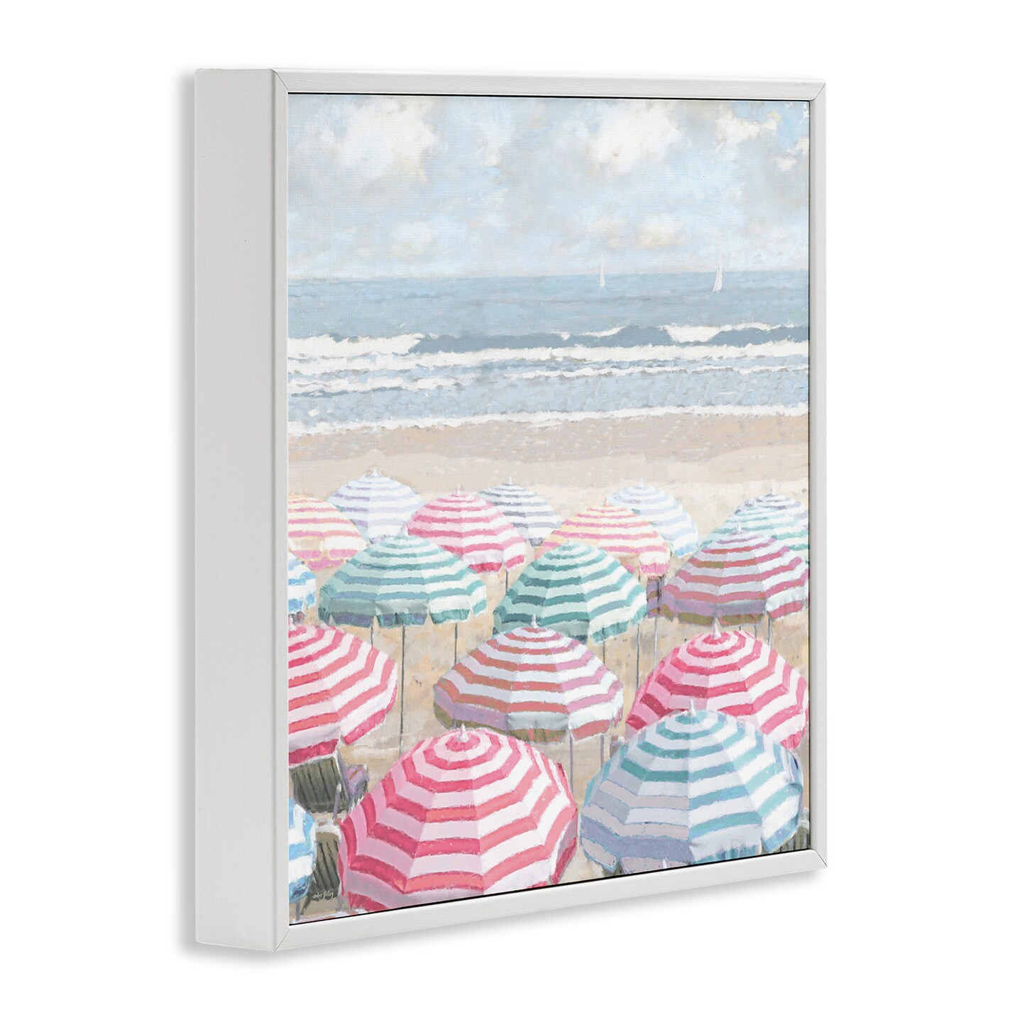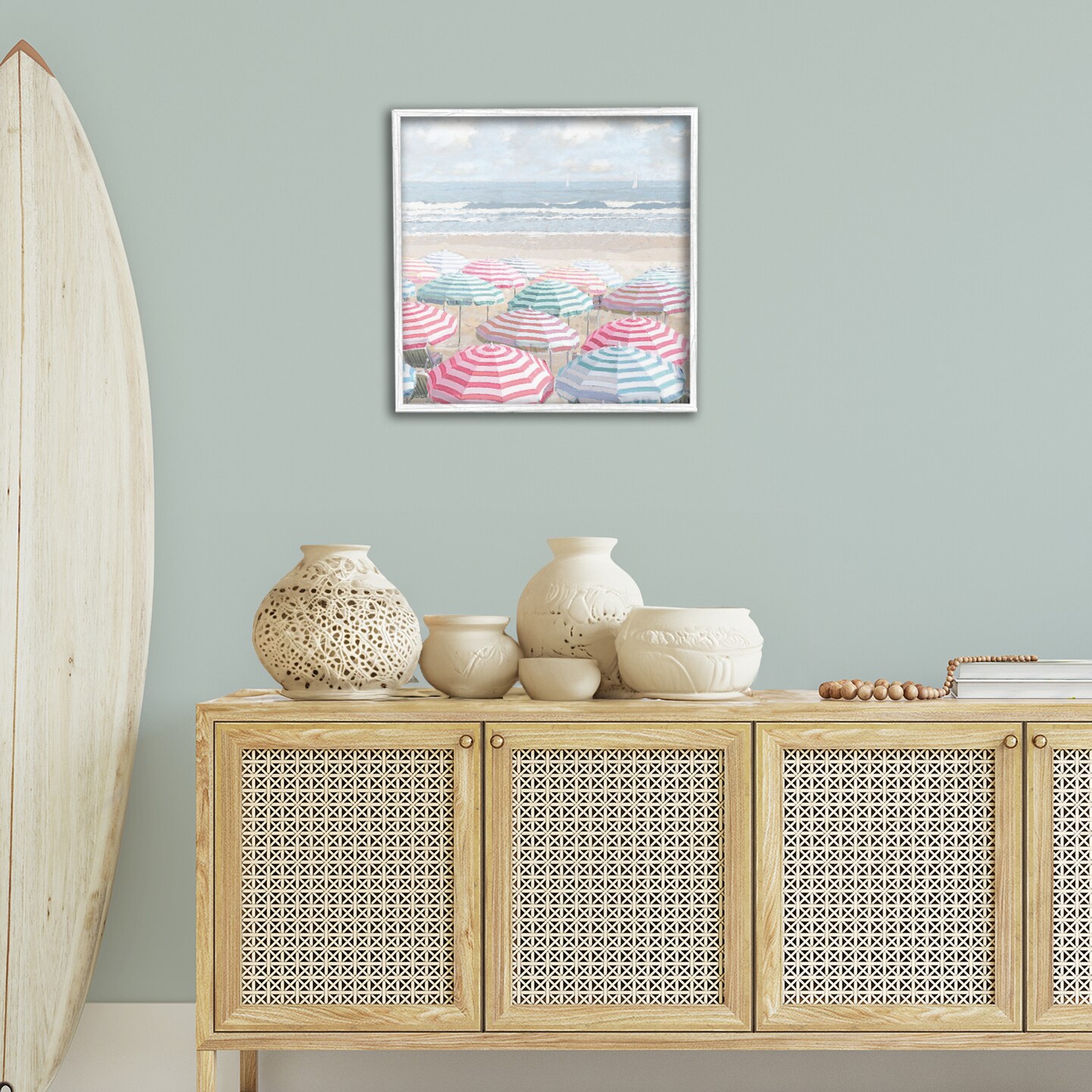Stupell Industries Bright Beach Umbrellas Scene Framed Giclee Design by Amber Sterling