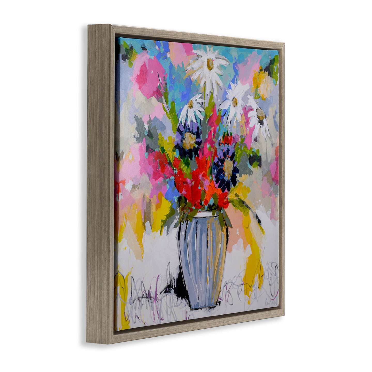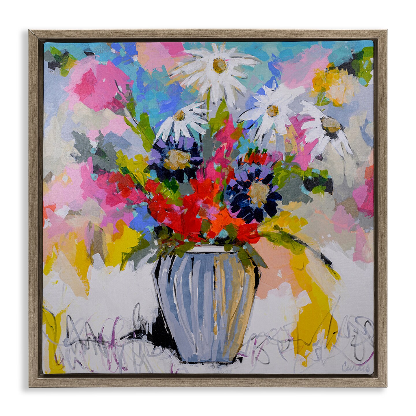 Stupell Industries Bright Clustered Flowers Floating Frame Design by Joan Curtis