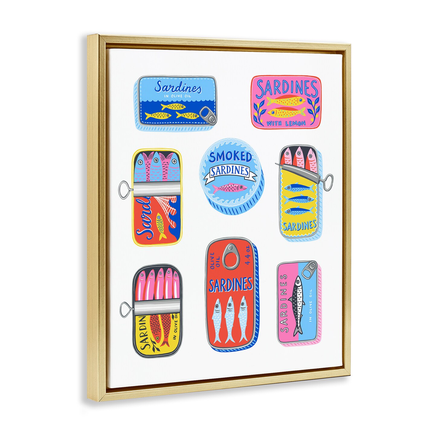 Stupell Industries Bright & Pastel Sardine Tins Floating Frame, design by Bex Morley Design