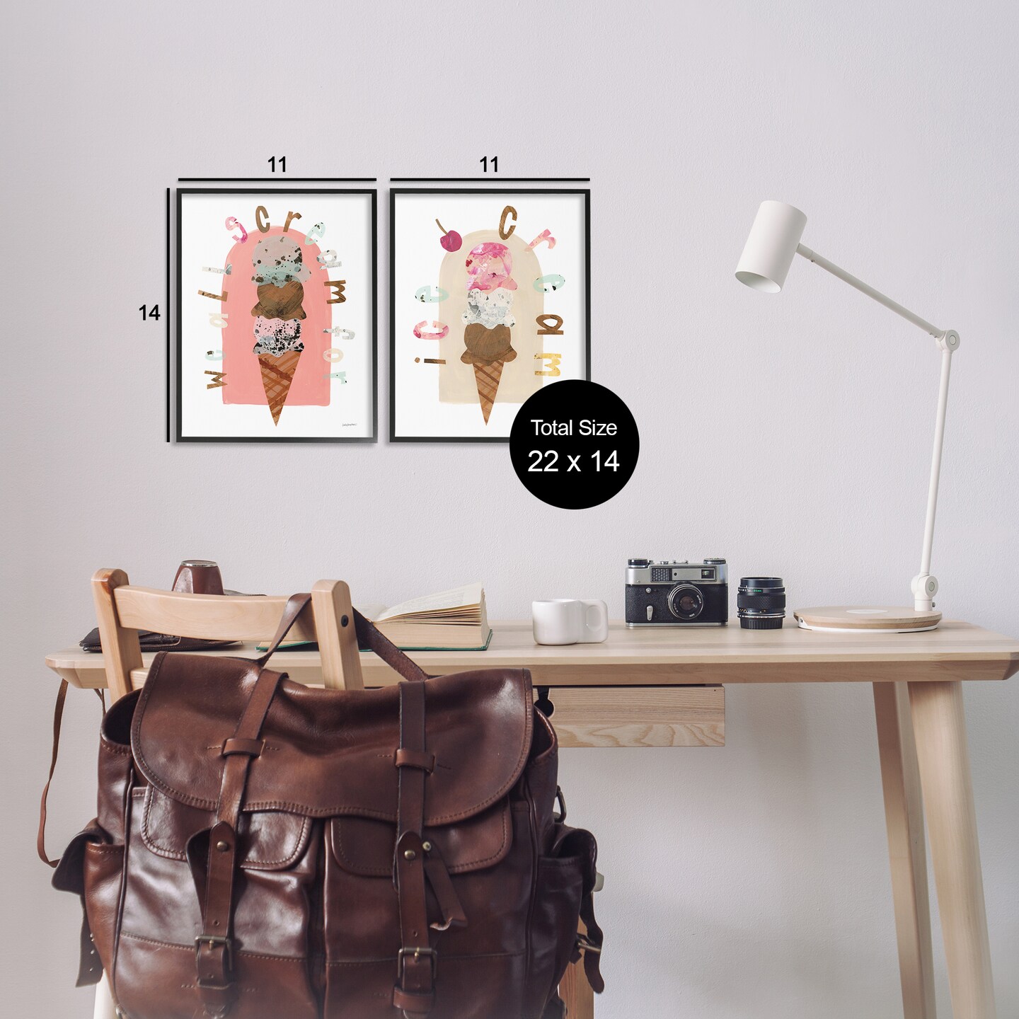 Stupell Industries Bright Pastels Ice Cream 2pc Framed Giclee Wall Art Set Design by Haley Knighten