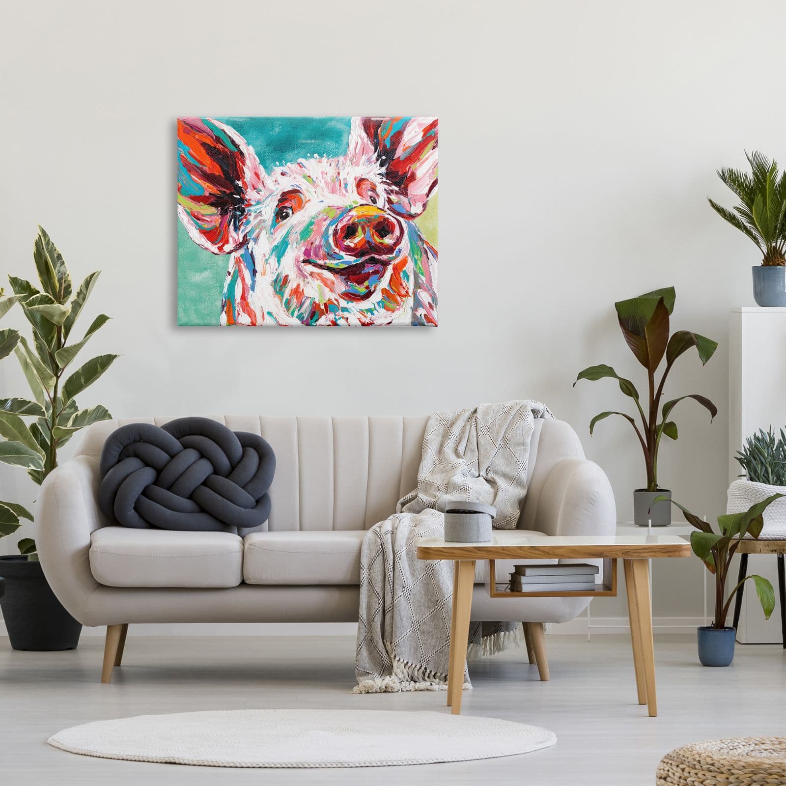 Stupell Industries Brightly Painted Pig Canvas Wall Art