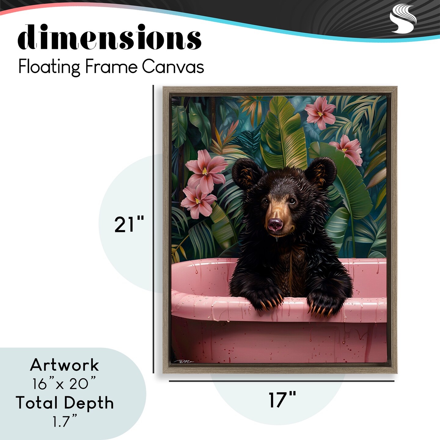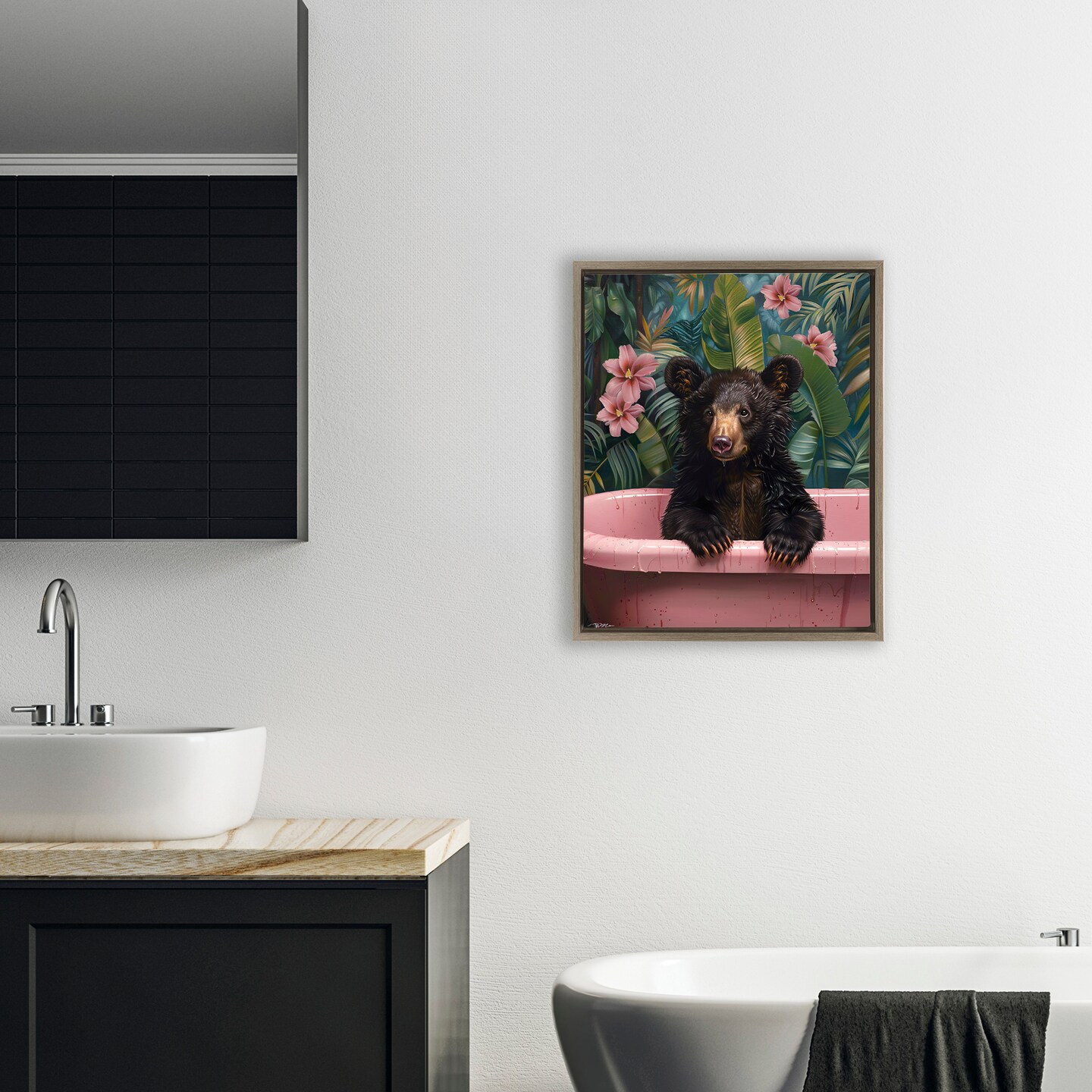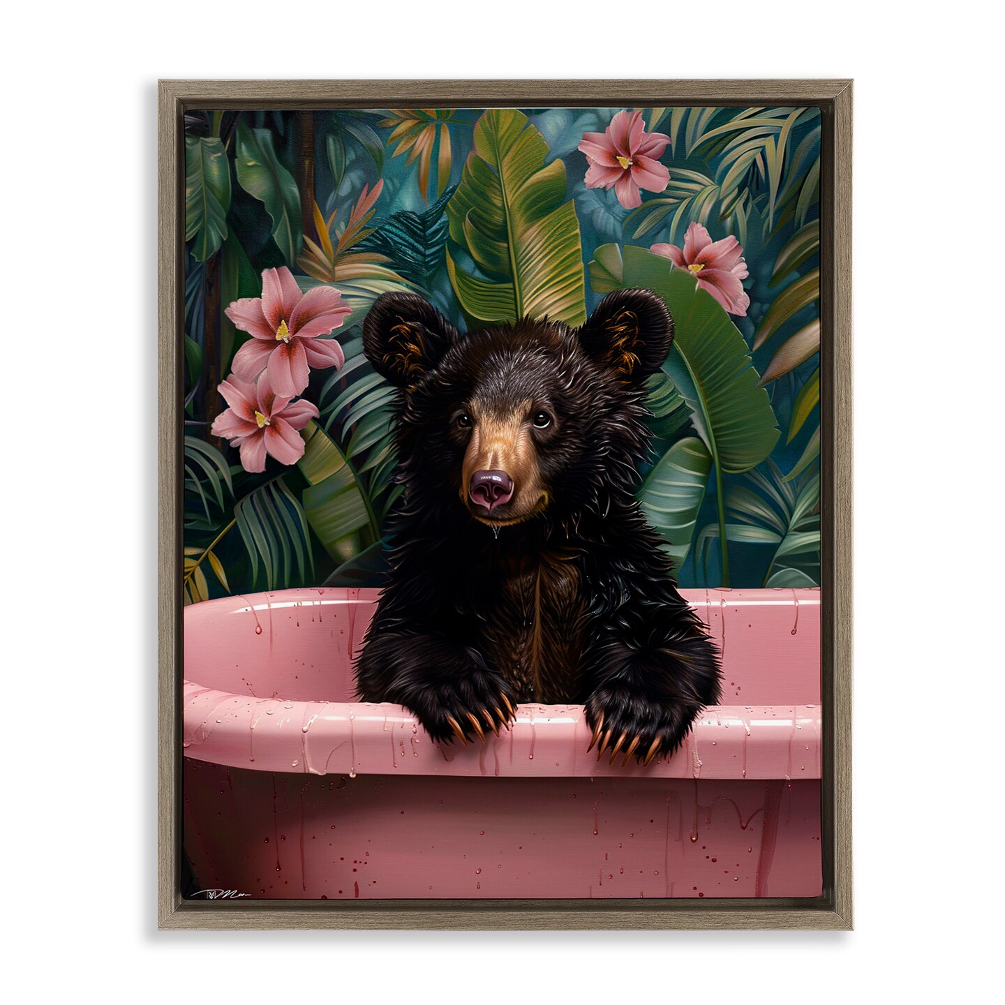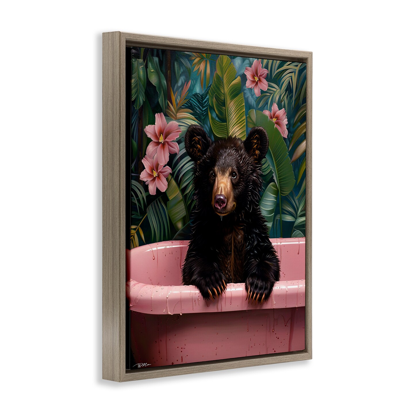 Stupell Industries Bruno Bear in Pink Tub Floating Frame, design by Momart