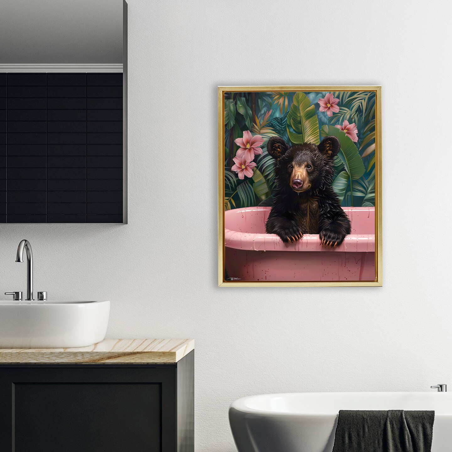 Stupell Industries Bruno Bear in Pink Tub Floating Frame, design by Momart