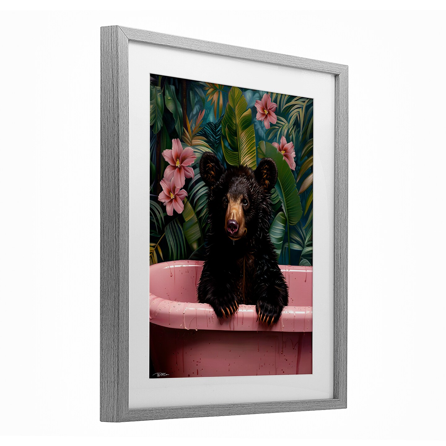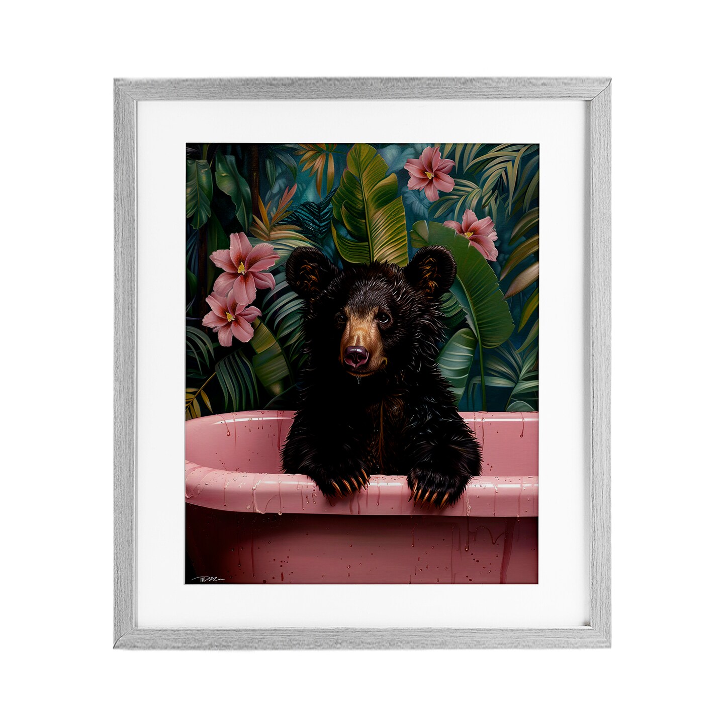 Stupell Industries Bruno Bear in Pink Tub Framed Print Under Glass, design by Momart