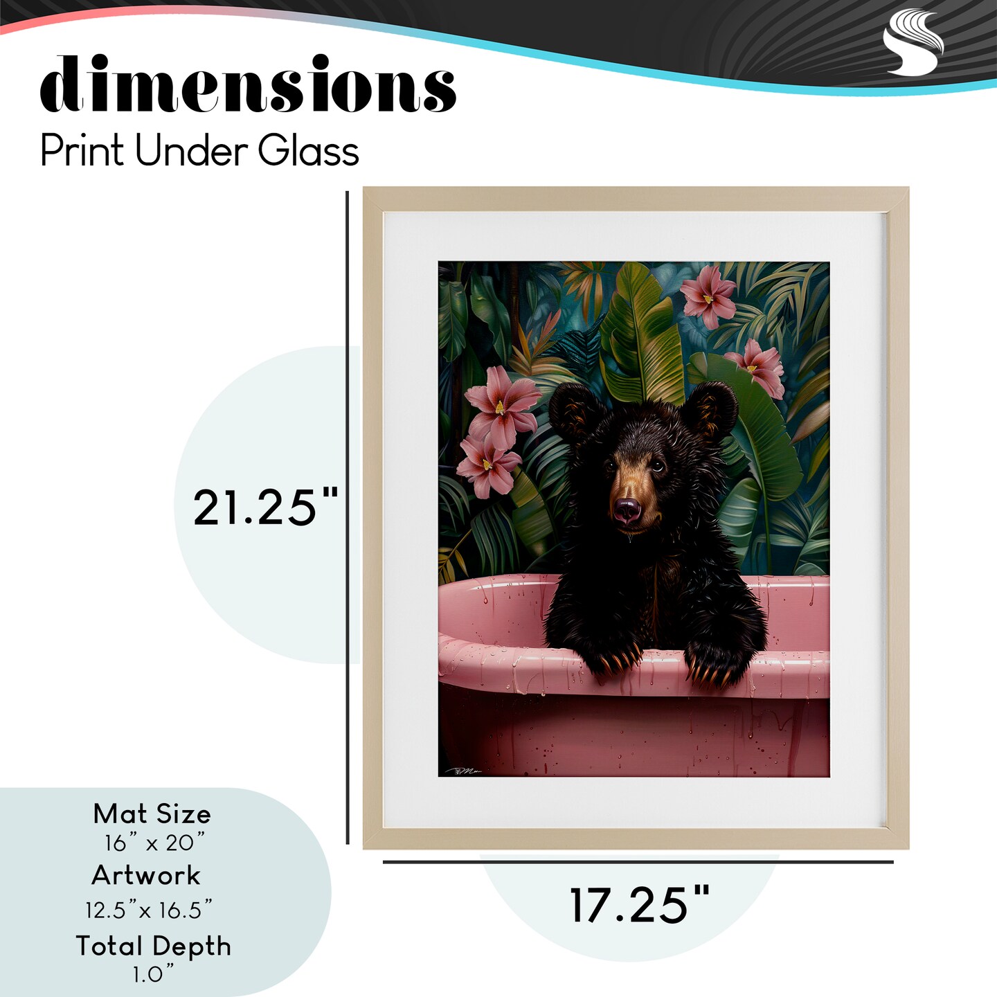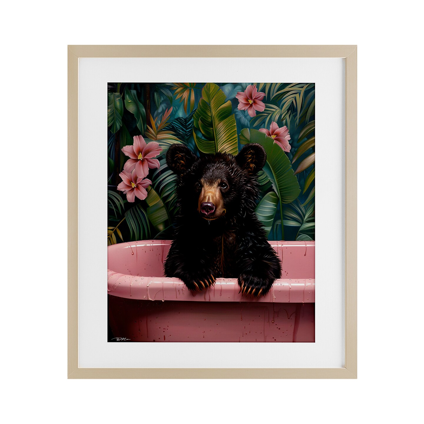 Stupell Industries Bruno Bear in Pink Tub Framed Print Under Glass, design by Momart