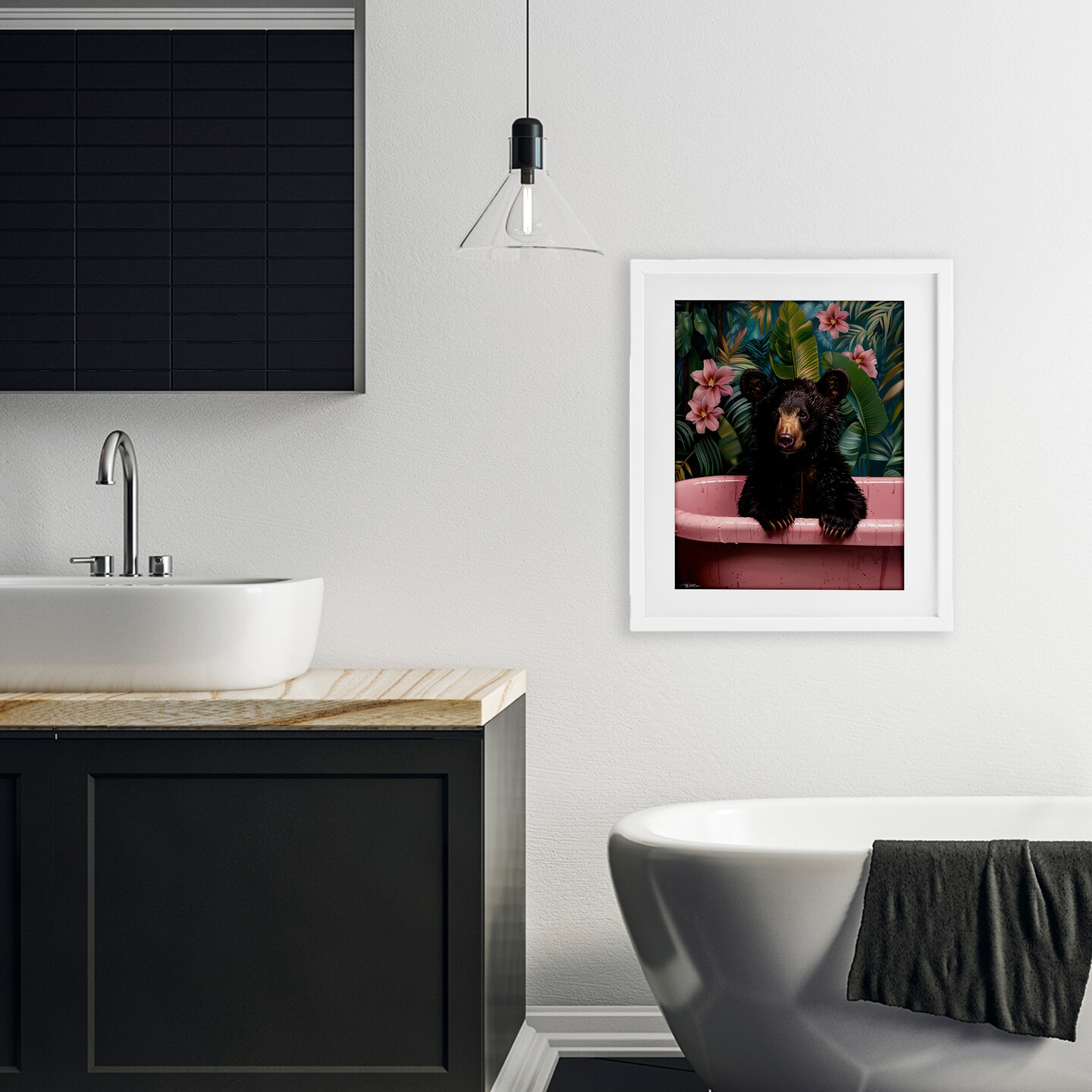 Stupell Industries Bruno Bear in Pink Tub Framed Print Under Glass, design by Momart