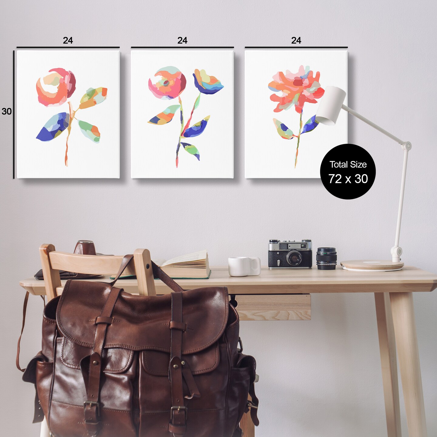 Stupell Industries Brushed Freeflow Flower 3pc Canvas Wall Art Set Design by Lisa Nohren