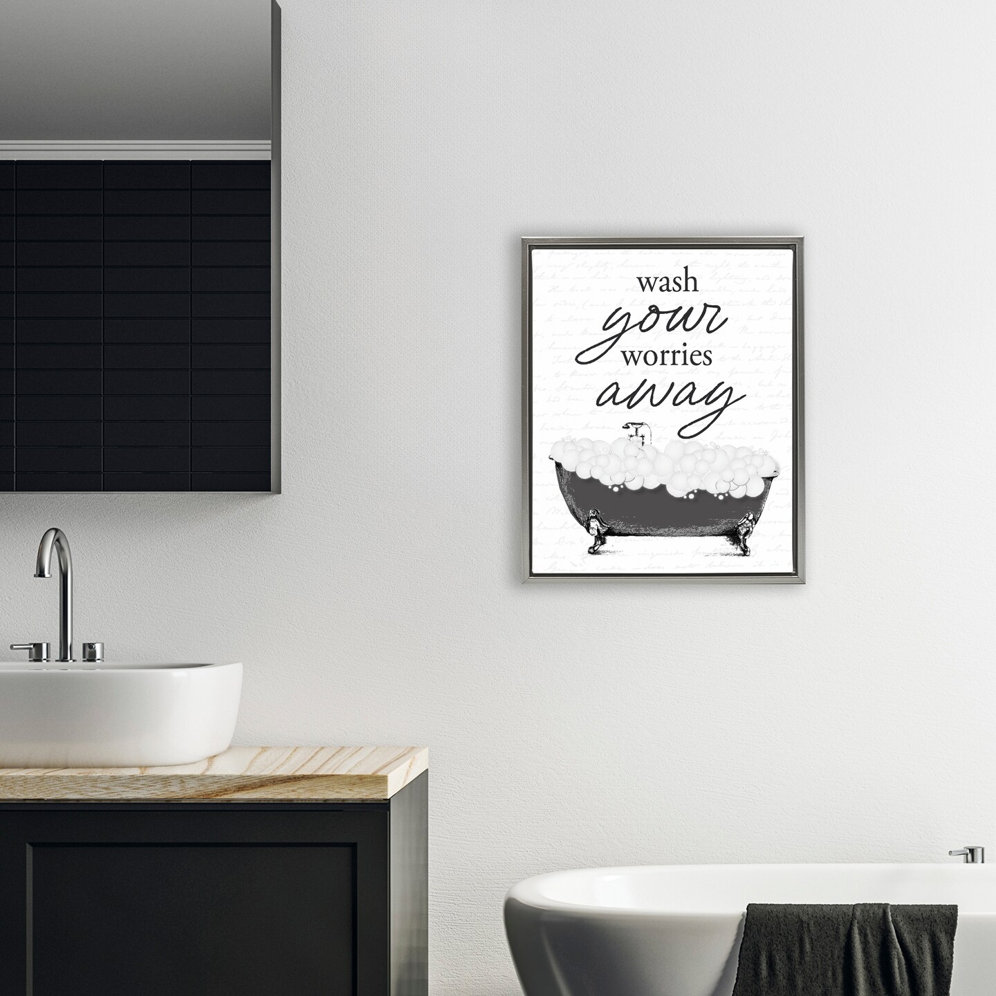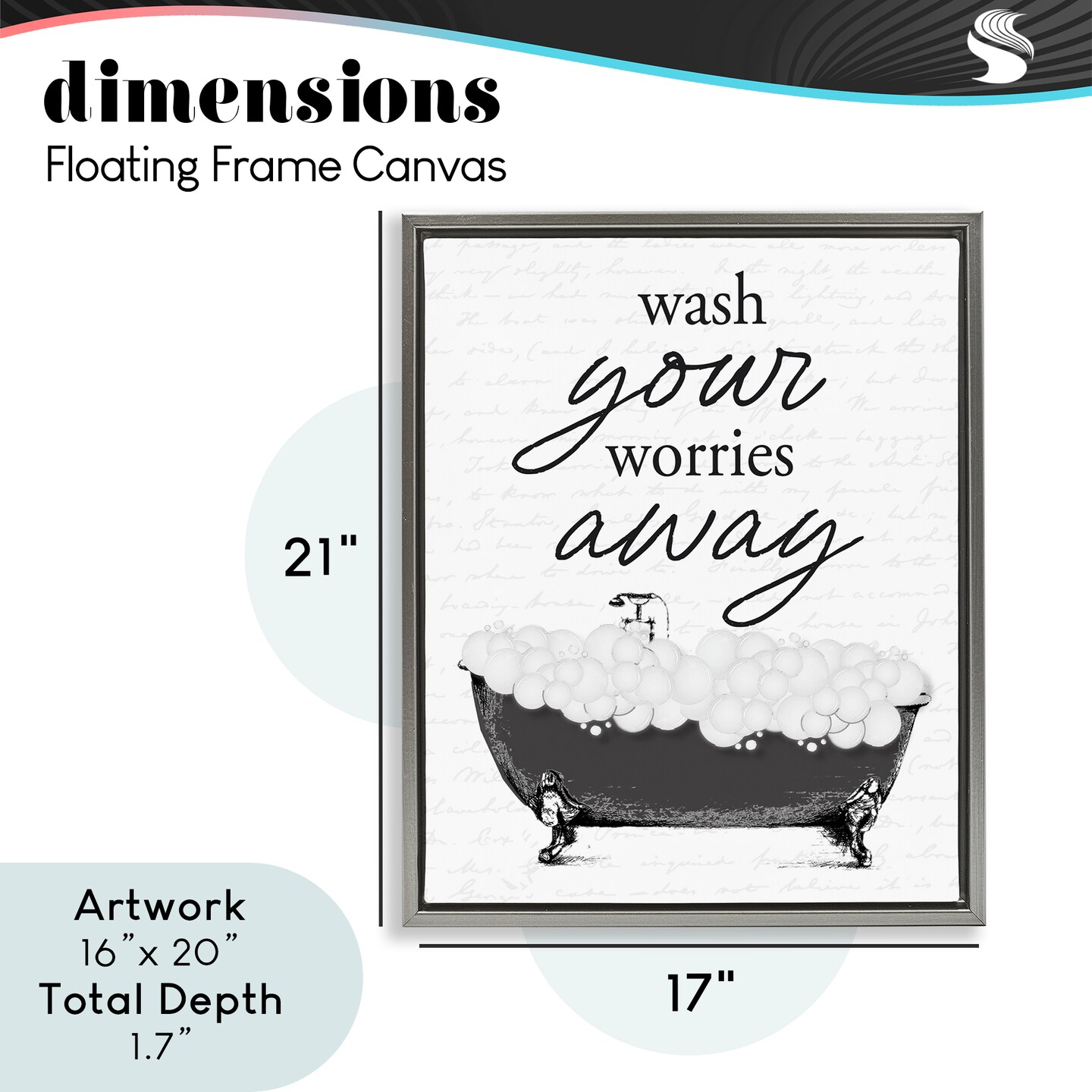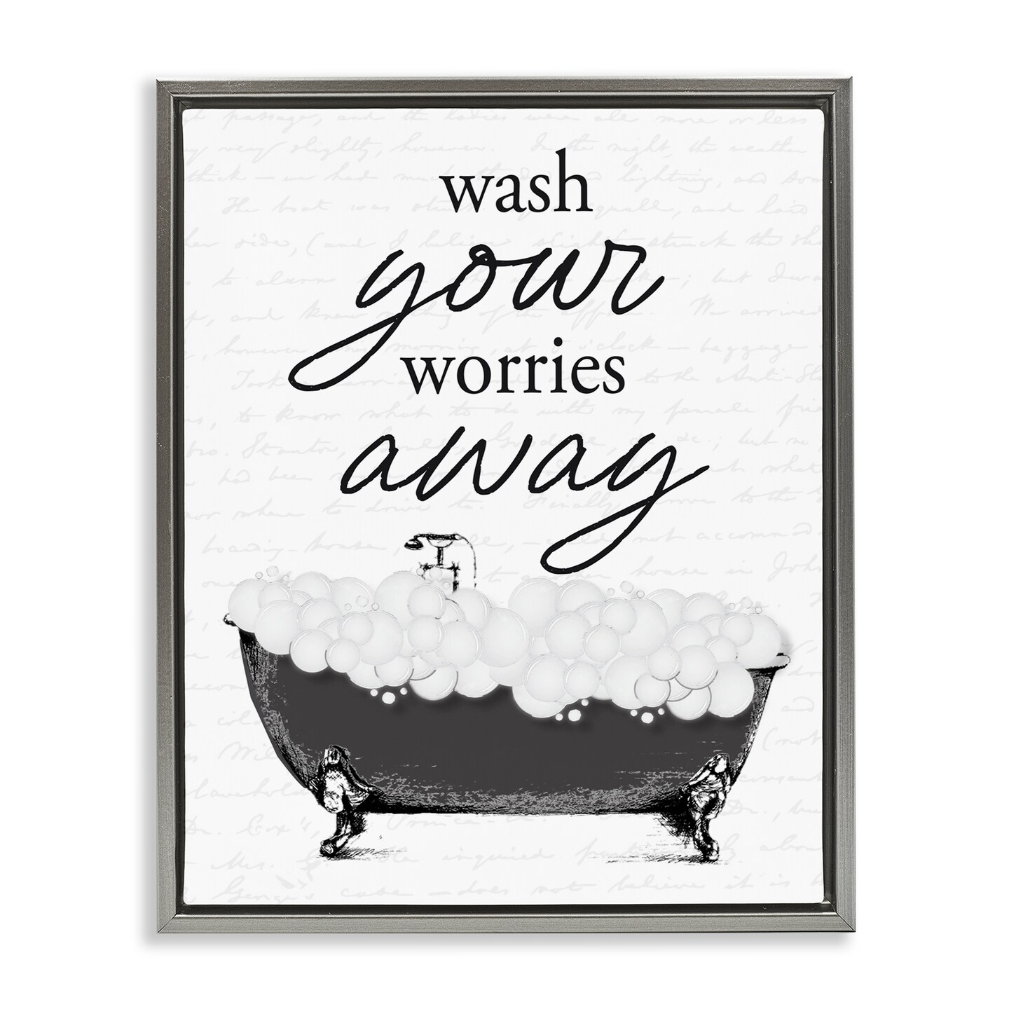 Stupell Industries Bubble Bath Wash Worries Floating Frame, design by Lettered and Lined