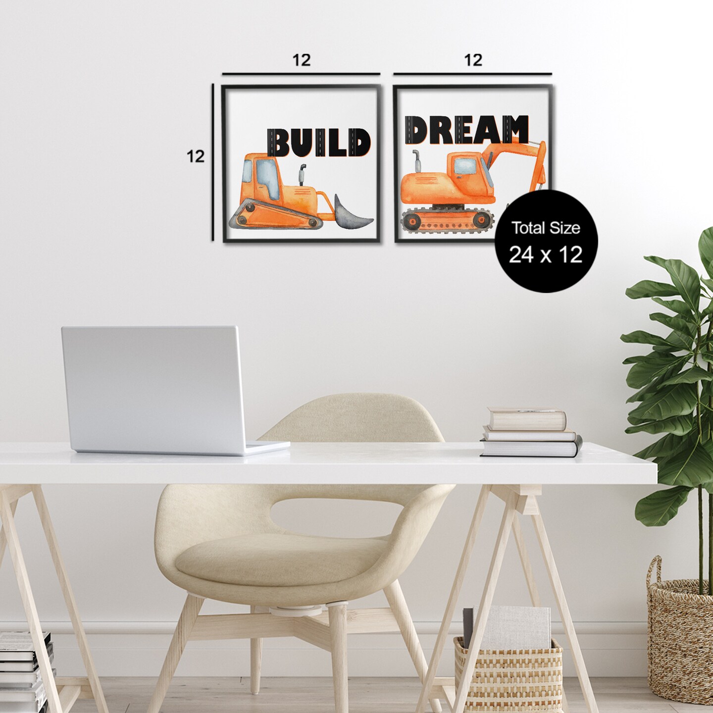 Stupell Industries Build & Dream Construction Vehicles 2pc Framed Giclee Set, design by Kim Allen