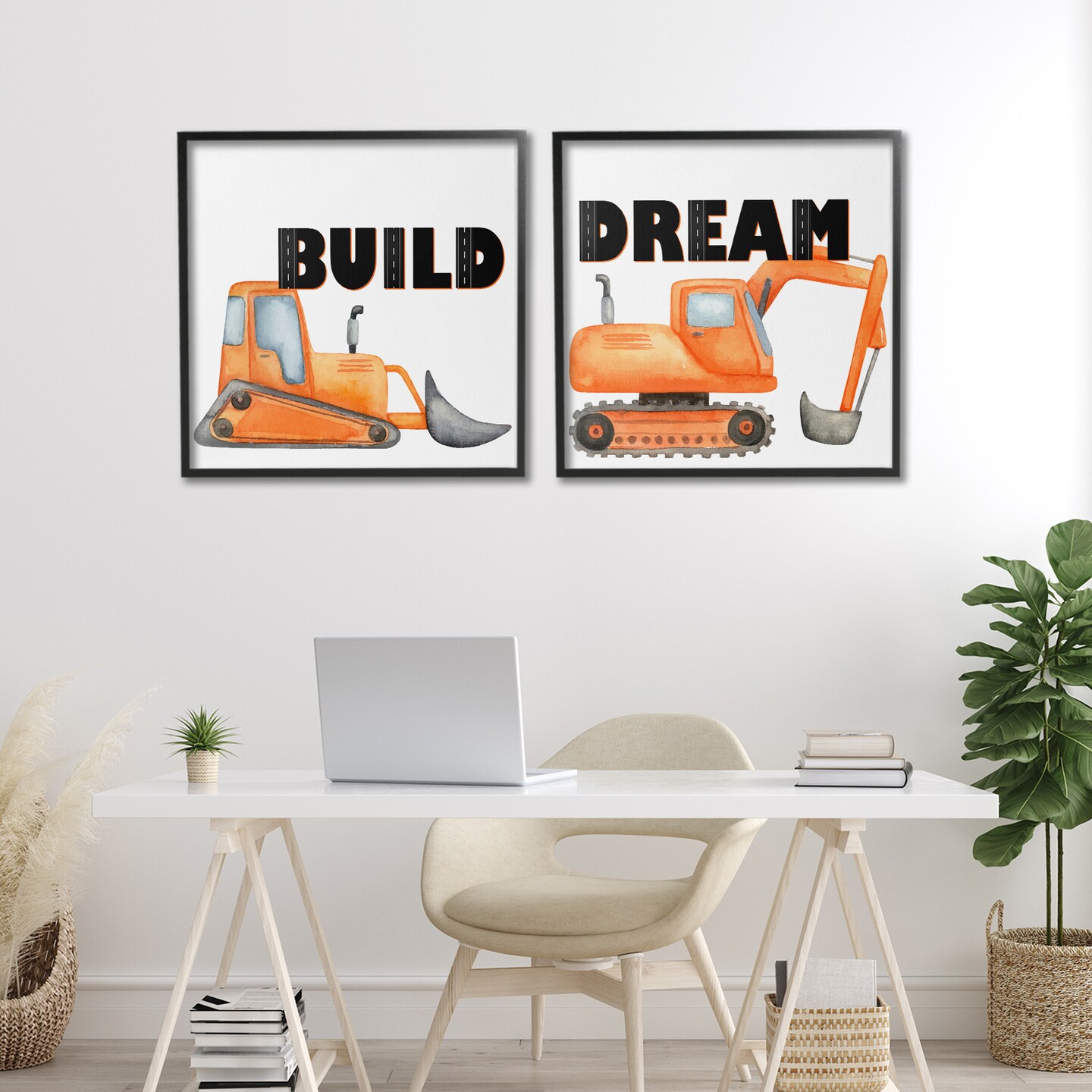 Stupell Industries Build & Dream Construction Vehicles 2pc Framed Giclee Set, design by Kim Allen